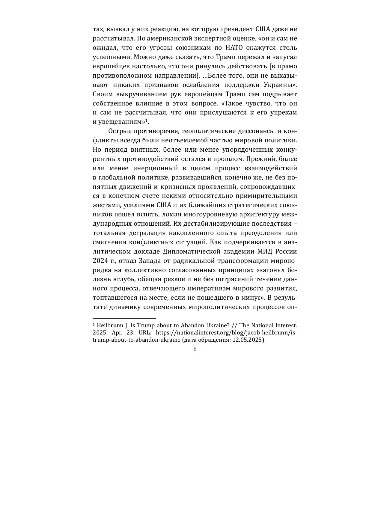 В книге анализируются остропроблемные узлы макросистемных трансформаций, вызванных совокупностью кризисов, интернационализация которых стала знаковой особенностью мировой политики: локально-страновых, региональных, субрегиональных, транснациональных, глобально-международных. Автор выделяет те из них, которые имеют первостепенное значение для обеспечения стратегической стабильности. Кризисное развитие ситуации на Украине рассматривается в фокусе противоборства Запада с Россией. Показана геополитическая важность профильных рубежных изменений в обновленных документах стратегического планирования России. Издание ориентировано на целевое использование в процессе обучения студентов магистратуры, аспирантов и в рамках программ повышения квалификации российских и зарубежных дипломатов. Предназначено также для широкого круга специалистов, занимающихся международно-политической проблематикой.