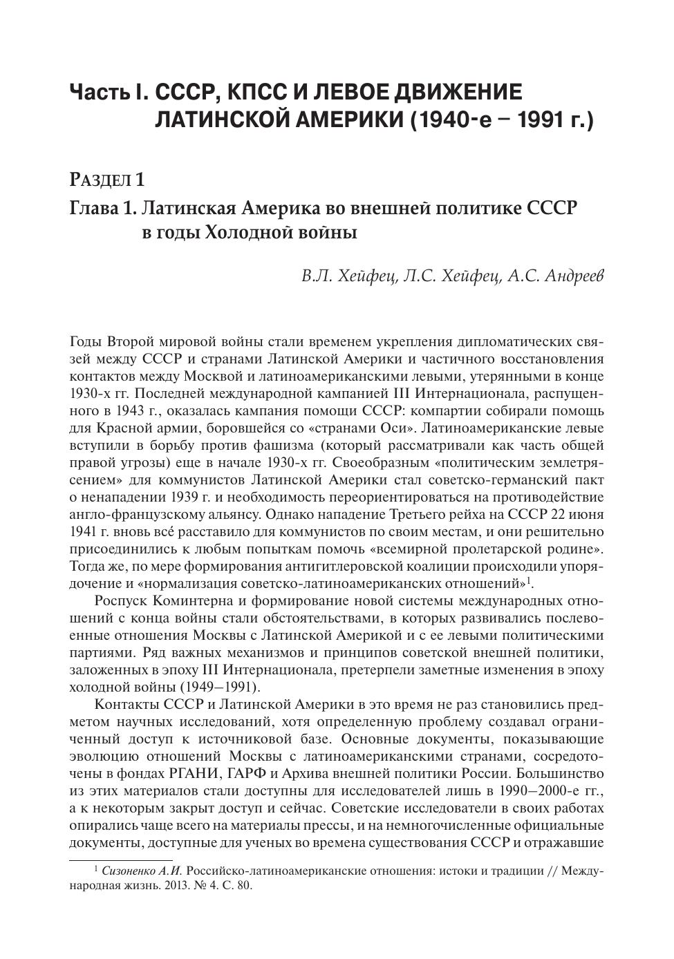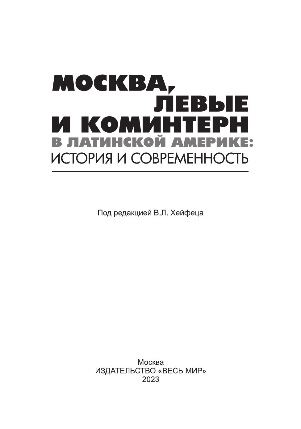 Настоящее издание посвящено отношениям левого движения в Латинской Америке и СССР в эпоху холодной войны, а также судьбам латиноамериканского левого движения в период после ее окончания. На основании материалов российских и зарубежных архивов коллектив авторов показывает, как КПСС воспринимала латиноамериканские левые силы, каково было наследие Коминтерна в левом движении Латинской Америки и как межпартийные связи влияли на формирование советской внешней политики в регионе. В книге затрагиваются вопросы влияния наследия эпохи холодной войны на современную политическую ситуацию в странах Латинской Америки и на их отношения с Россией. Издание адресовано специалистам в области истории внешней политики, истории международного левого движения, студентам и аспирантам профильных вузов.