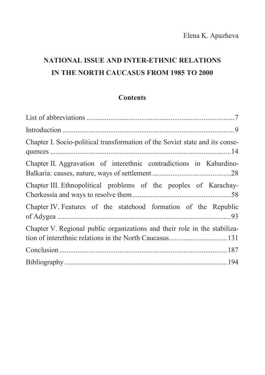 республиках: Кабардино-Балкарии, Карачаево-Черкесии и Республике Адыгея, ставшие здесь основным фоном общественной трансформации и этнополитической реконструкции страны в конце XX в.