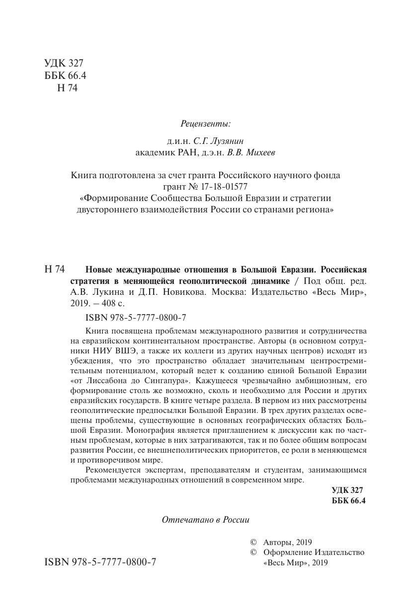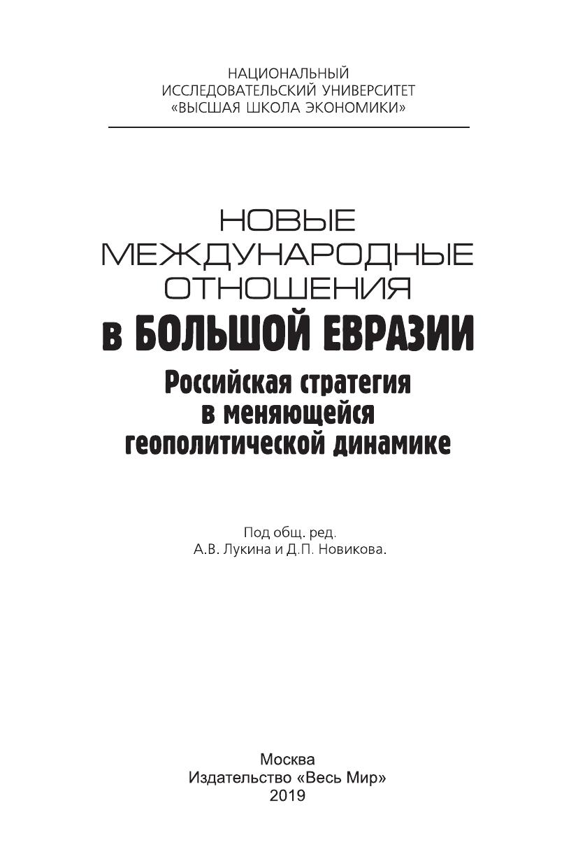 Новые международные отношения в Большой Евразии. Российская стратегия в меняющейся геополитической динамике