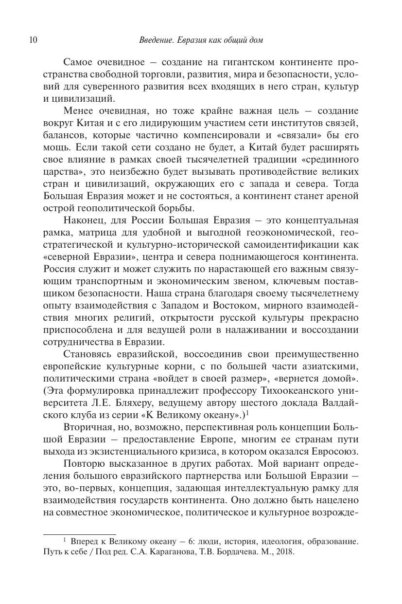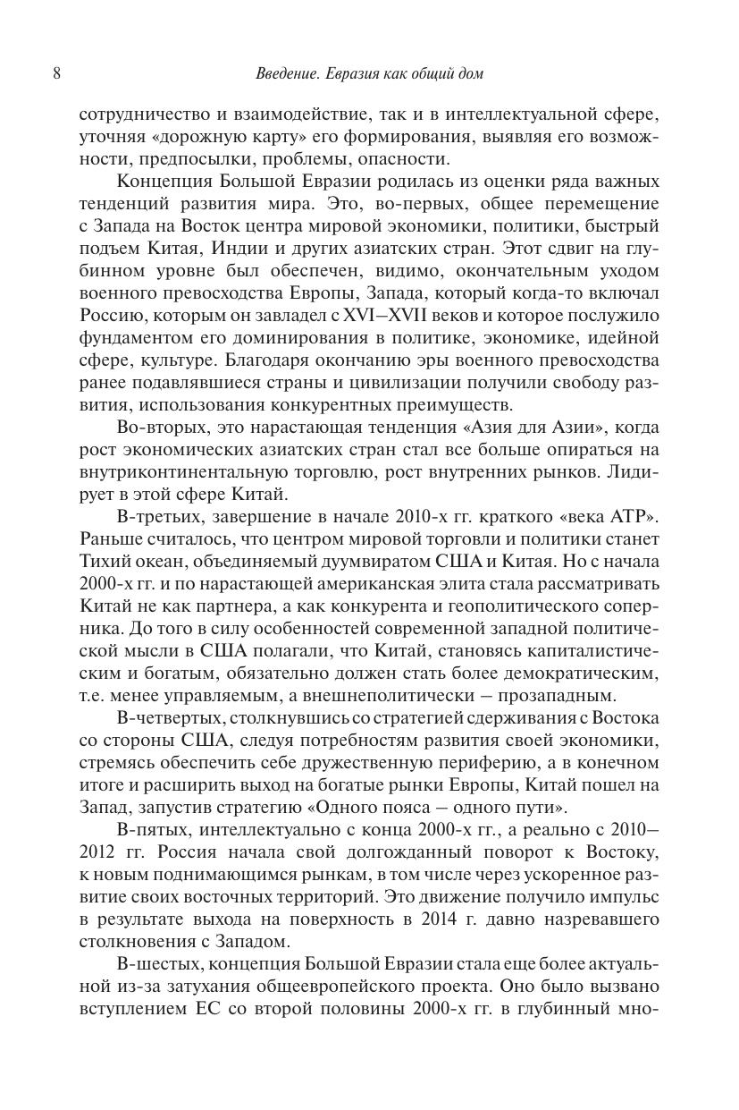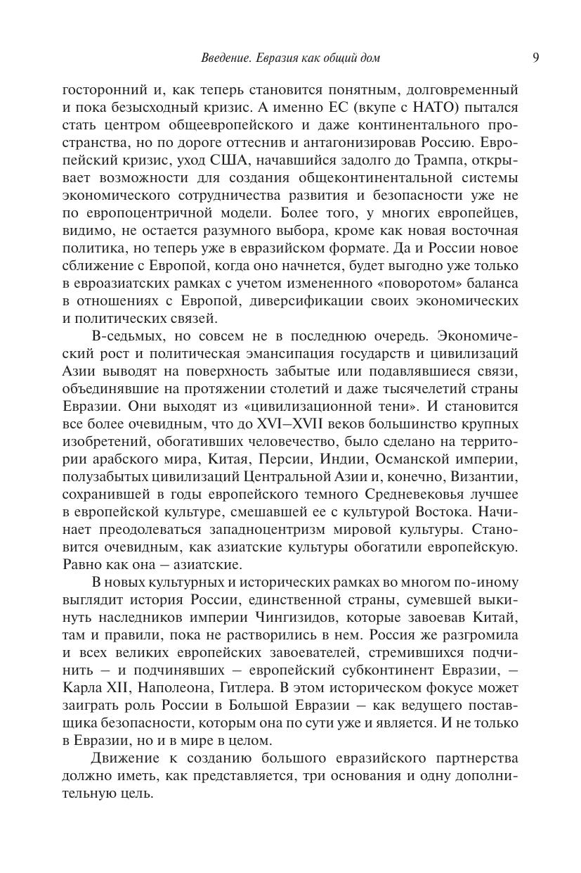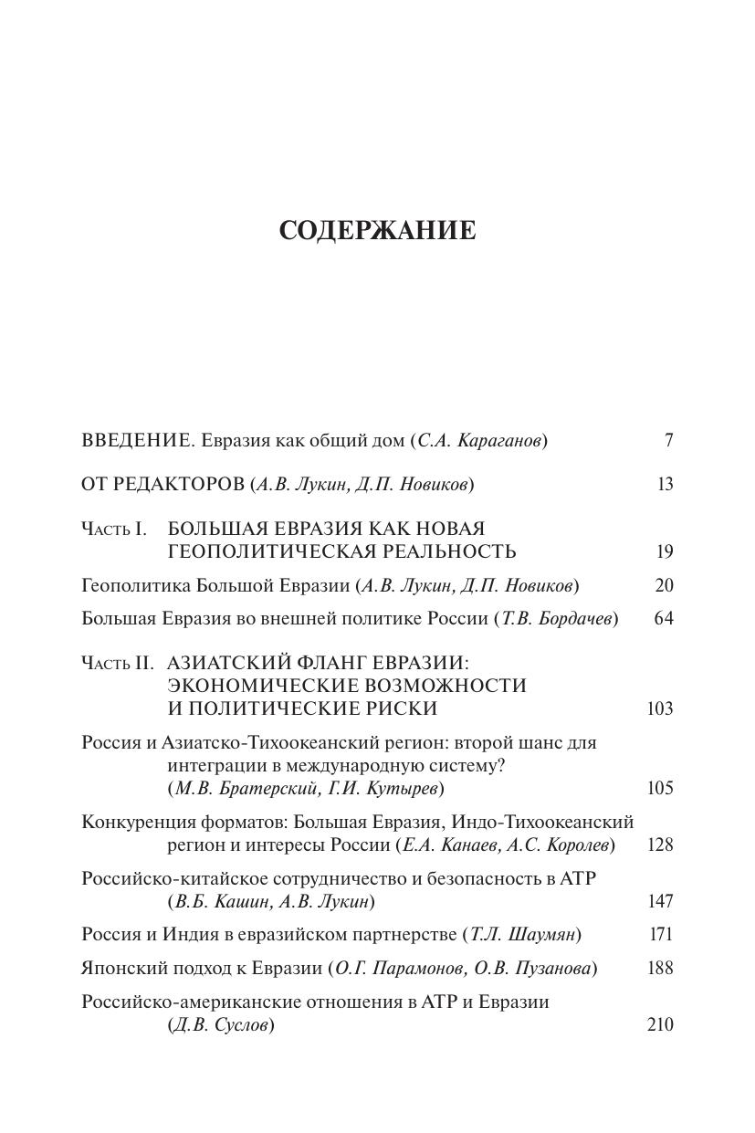 Книга посвящена проблемам международного развития и сотрудничества на евразийском континентальном пространстве. Авторы (в основном сотрудники НИУ ВШЭ, а также их коллеги из других научных центров) исходят из убеждения, что это пространство обладает значительным центростремительным потенциалом, который ведет к созданию единой Большой Евразии «от Лиссабона до Сингапура». Кажущееся чрезвычайно амбициозным, его формирование столь же возможно, сколь и необходимо для России и других евразийских государств. В книге четыре раздела. В первом из них рассмотрены геополитические предпосылки Большой Евразии. В трех других разделах освещены проблемы, существующие в основных географических областях Большой Евразии. Монография является приглашением к дискуссии как по частным проблемам, которые в них затрагиваются, так и по более общим вопросам развития России, ее внешнеполитических приоритетов, ее роли в меняющемся и противоречивом мире. Рекомендуется экспертам, преподавателям и студентам, занимающимся проблемами международных отношений в современном мире.