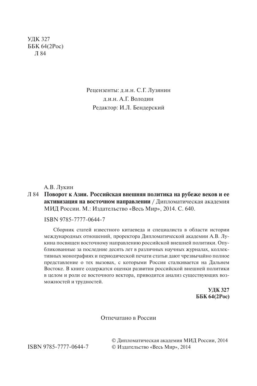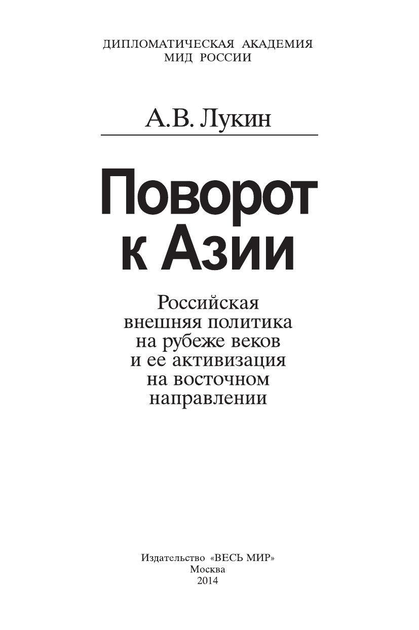 Сборник статей известного китаеведа и специалиста в области истории международных отношений, проректора Дипломатической академии А.В. Лукина посвящен восточному направлению российской внешней политики. Опубликованные за последние десять лет в различных научных журналах, коллективных монографиях и периодической печати статьи дают чрезвычайно полное представление о тех вызовах, с которыми Россия сталкивается на Дальнем Востоке. В книге содержатся оценки развития российской внешней политики в целом и роли ее восточного вектора, приводится анализ существующих возможностей и трудностей.