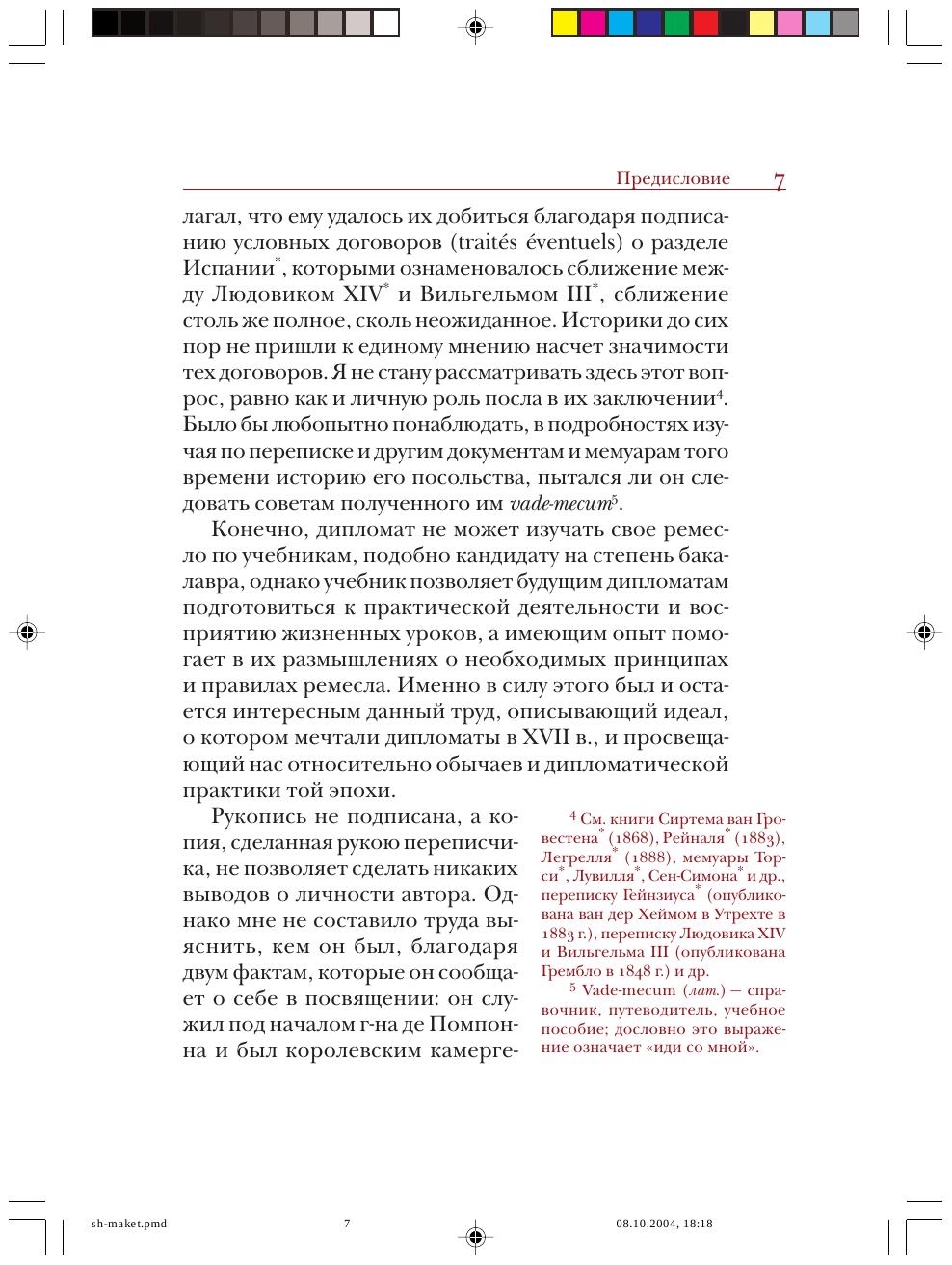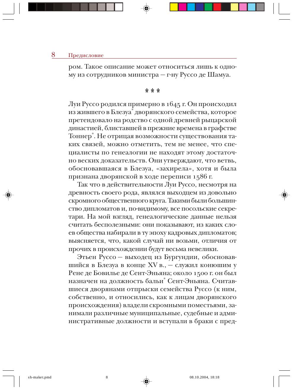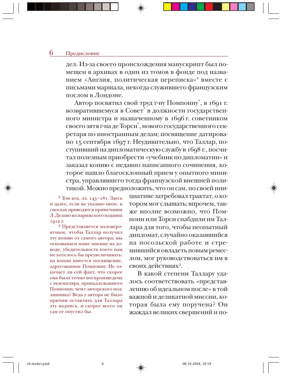 Очередное издание из серии «Классика дипломатии» представляет собой перевод трактата о дипломатической службе, написанного французским дипломатом конца XVII — начала XVIII вв. Луи Руссо де Шамуа (1645—1711), а также содержит краткий обзор классической литературы о дипломатии и образцы дипломатической переписки того времени. Книга предназначена для специалистов и широкого круга читателей