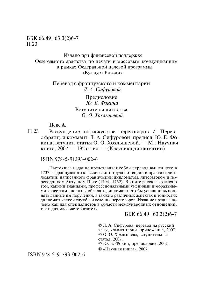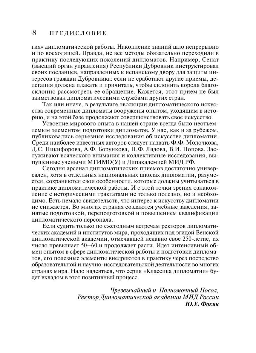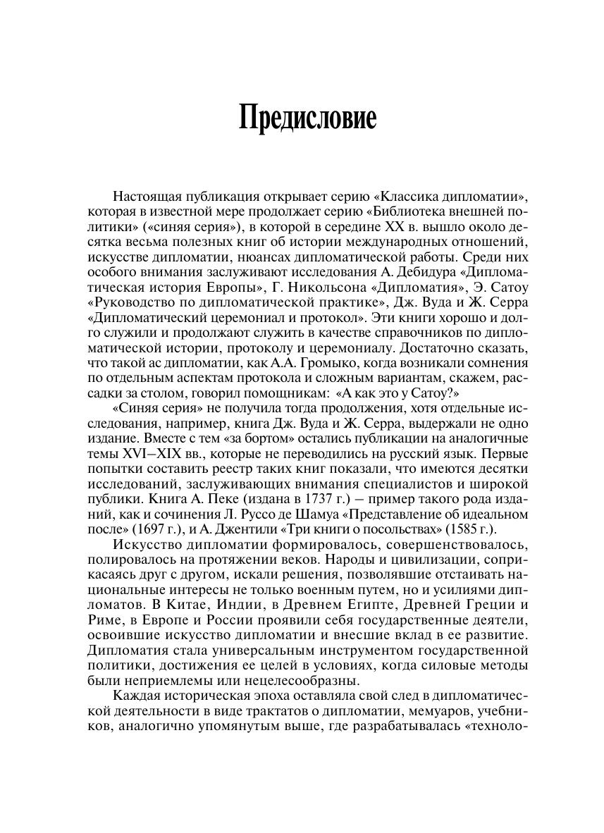 Настоящее издание представляет собой перевод вышедшего в 1737 г. французского классического труда по теории и практике дипломатии, написанного французским дипломатом, литератором и переводчиком Антуаном Пеке (1704–1762). В книге рассказывается о том, какими знаниями, профессиональными умениями и моральными качествами должны обладать дипломаты, чтобы успешно выполнять данные им поручения, а также о различных аспектах и тонкостях дипломатической службы и ведения переговоров. Издание предназначено как для специалистов в области международных отношений, так и для массового читателя