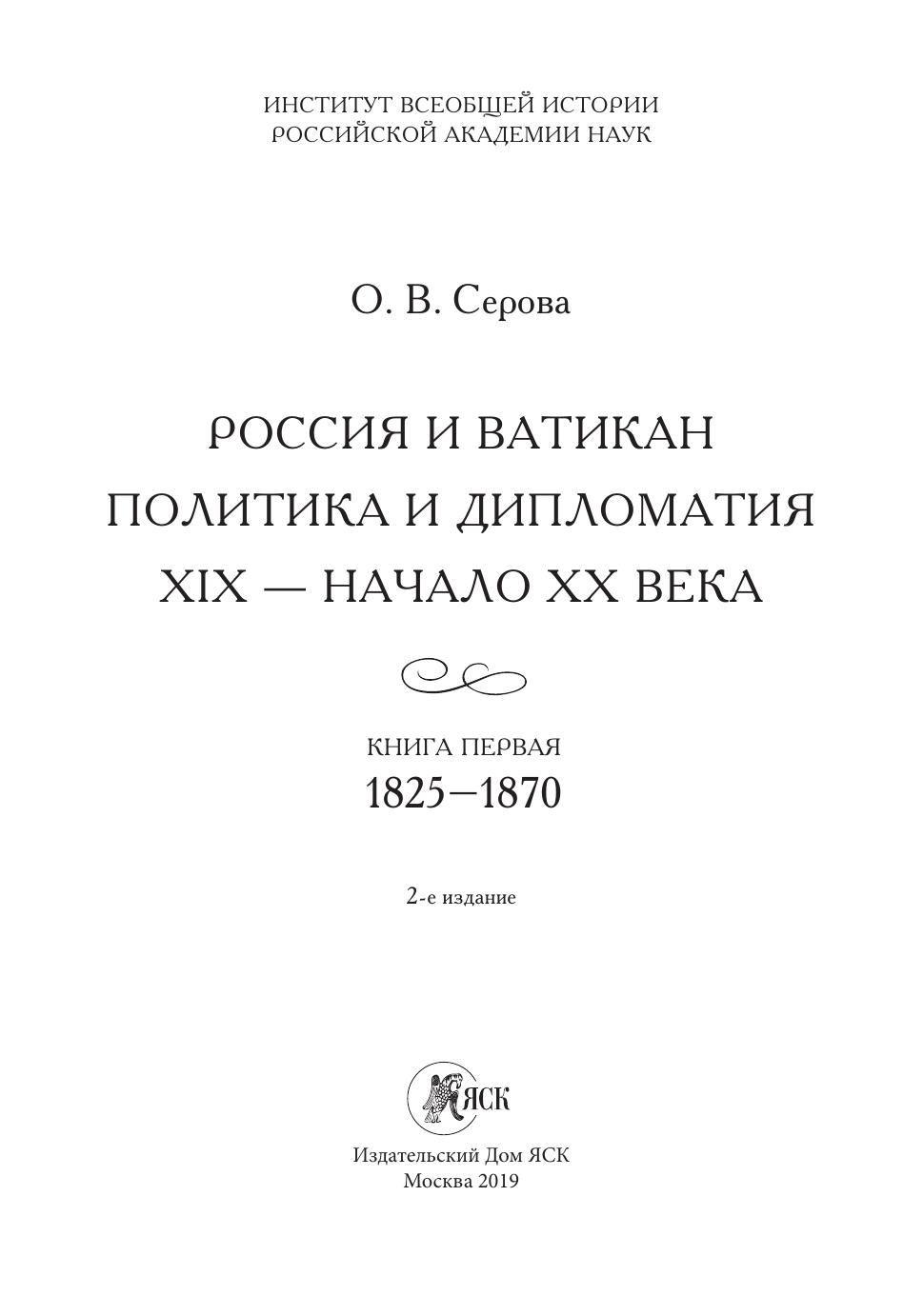 Россия и Ватикан. Политика и дипломатия. XIX – начало XX века. Кн. 1: 1825–1870