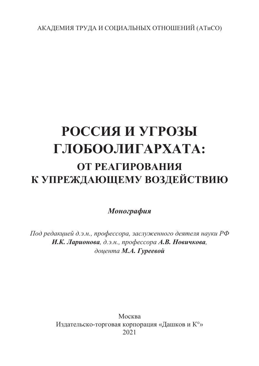 Россия и угрозы глобоолигархата: от реагирования к упреждающему воздействию