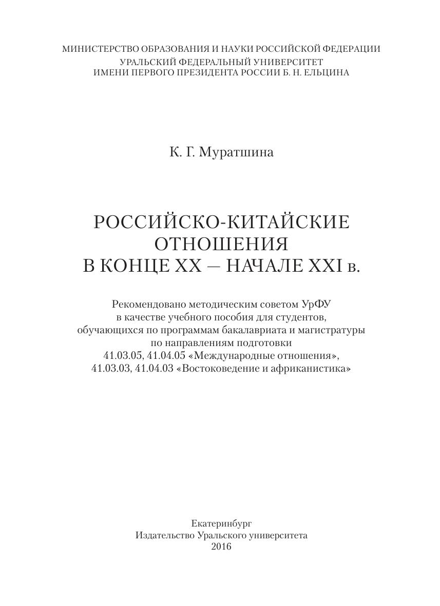 Российско-китайские отношения в конце XX — начале XXI в.: учеб. пособие