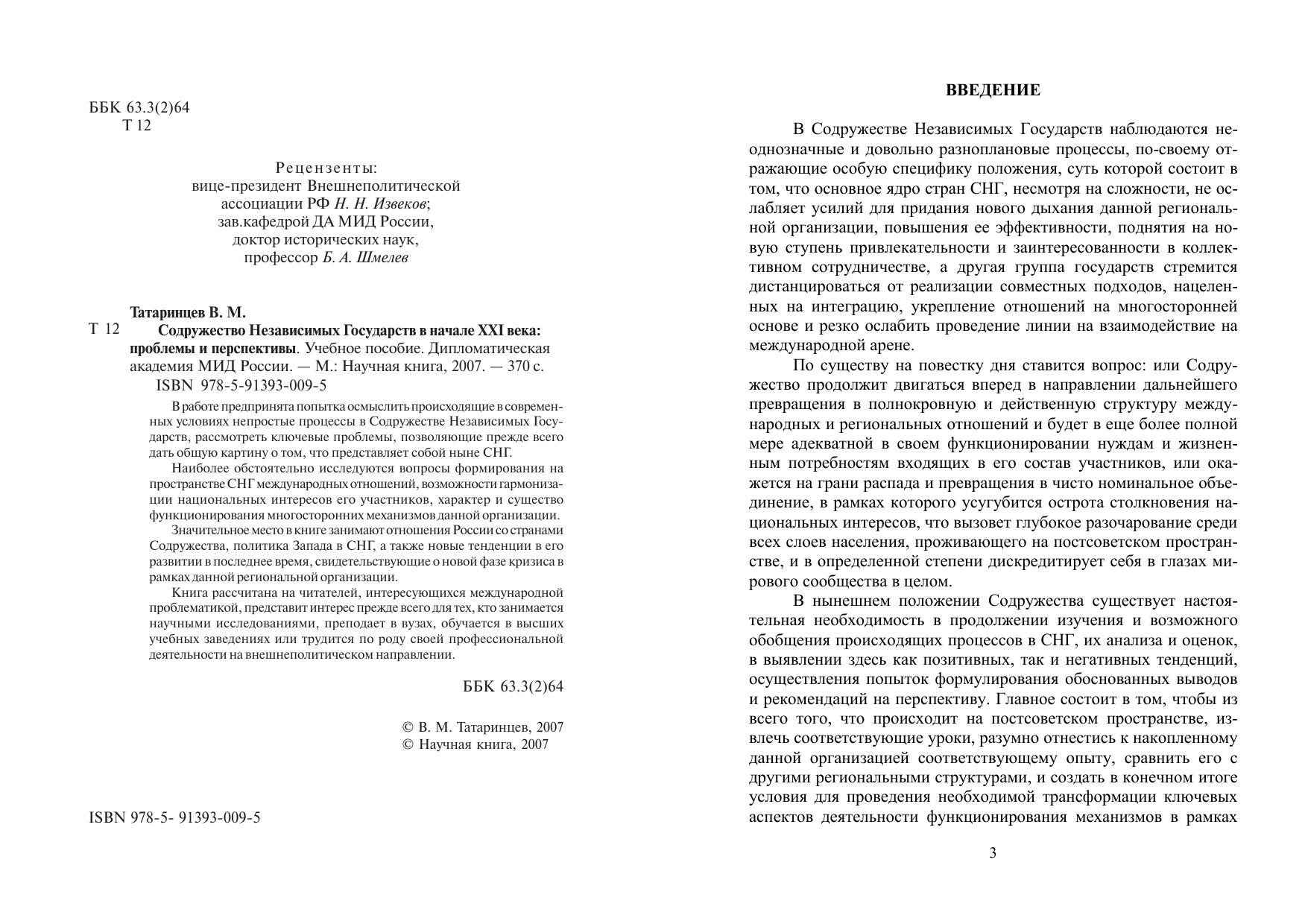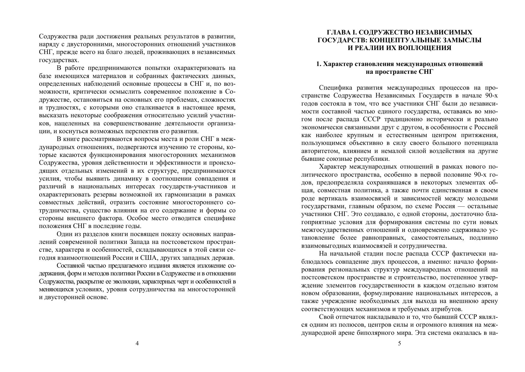 В работе предпринята попытка осмыслить происходящие в современных условиях непростые процессы в Содружестве Независимых Государств, рассмотреть ключевые проблемы, позволяющие прежде всего дать общую картину о том, что представляет собой ныне СНГ. Наиболее обстоятельно исследуются вопросы формирования на пространстве СНГ международных отношений, возможности гармонизации национальных интересов его участников, характер и существо функционирования многосторонних механизмов данной организации. Значительное место в книге занимают отношения России со странами Содружества, политика Запада в СНГ, а также новые тенденции в его развитии в последнее время, свидетельствующие о новой фазе кризиса в рамках данной региональной организации. Книга рассчитана на читателей, интересующихся международной проблематикой, представит интерес прежде всего для тех, кто занимается научными исследованиями, преподает в вузах, обучается в высших учебных заведениях или трудится по роду своей профессиональной деятельности на внешнеполитическом направлении.