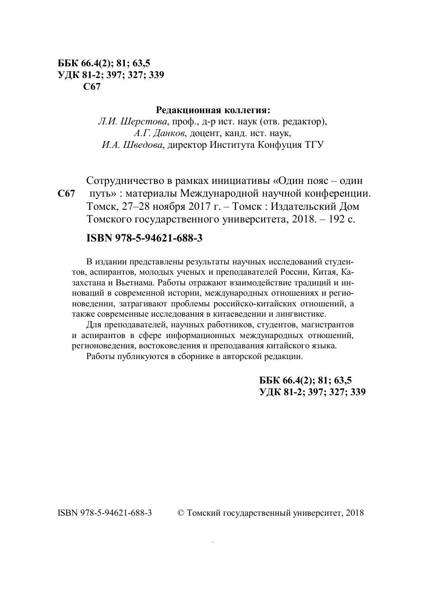 В издании представлены результаты научных исследований студентов, аспирантов, молодых ученых и преподавателей России, Китая, Казахстана и Вьетнама. Работы отражают взаимодействие традиций и инноваций в современной истории, международных отношениях и регионоведении, затрагивают проблемы российско-китайских отношений, а также современные исследования в китаеведении и лингвистике. Для преподавателей, научных работников, студентов, магистрантов и аспирантов в сфере информационных международных отношений, регионоведения, востоковедения и преподавания китайского языка. Работы публикуются в сборнике в авторской редакции.