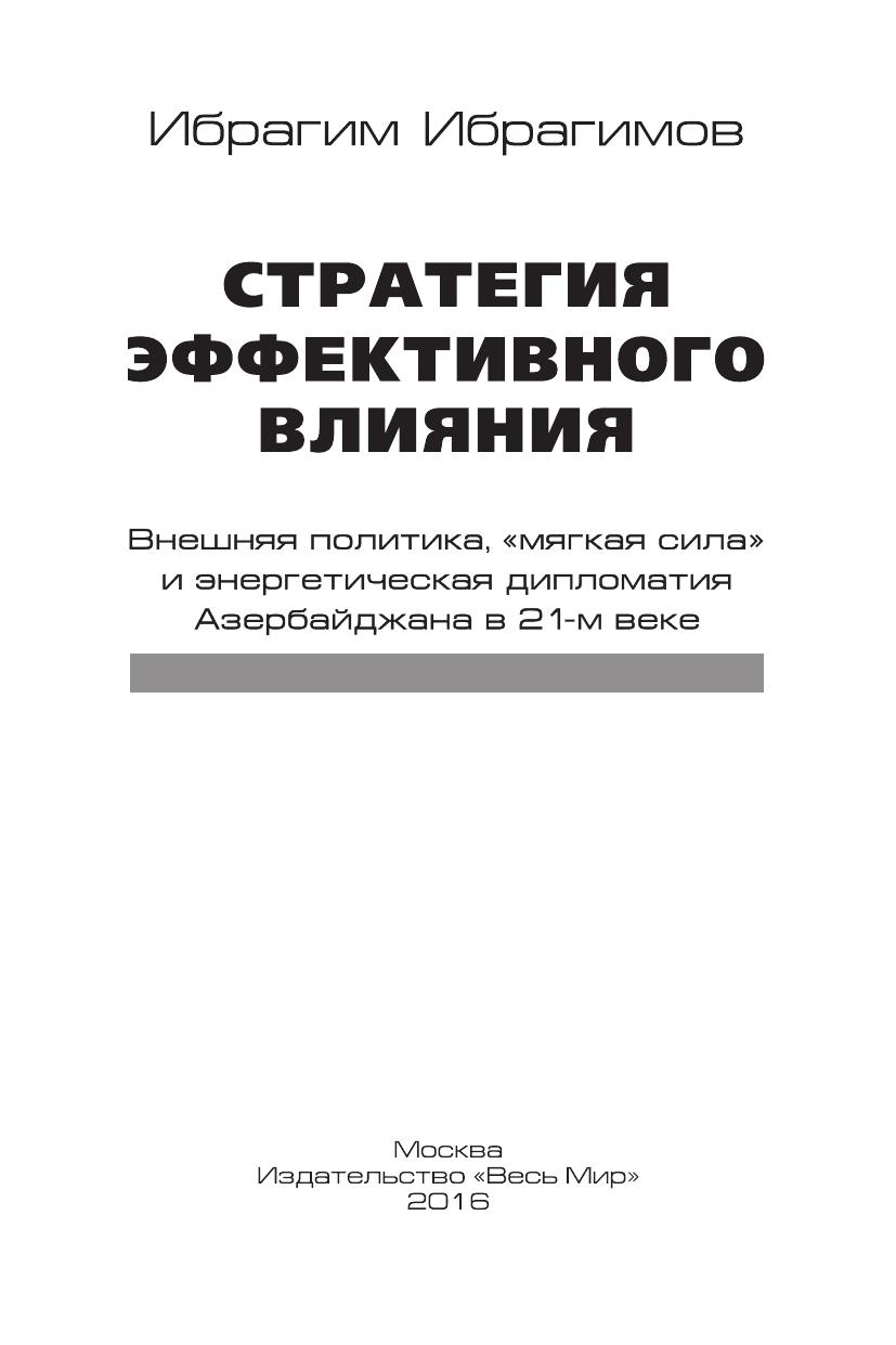 Стратегия эффективного влияния. Внешняя политика, «мягкая сила» и энергетическая дипломатия Азербайджана в 21-м веке