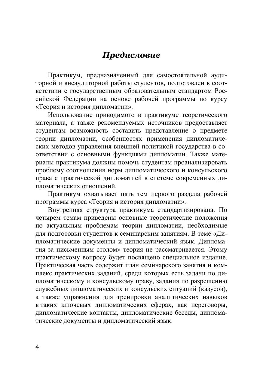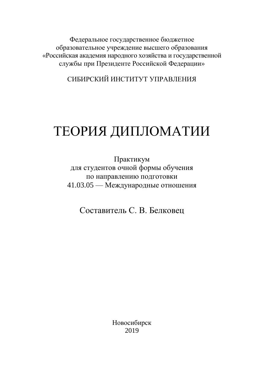Практикум подготовлен в соответствии с новыми тенденциями в мировой и отечественной дипломатии с целью формирования практических навыков при изучении дисциплины «Теория и история дипломатии», закрепления про-фессиональных знаний бакалавров. Практикум предназначен для студентов очной формы обучения направ-ления подготовки 41.03.05 — Международные отношения, а также для тех, кто интересуется основами современной дипломатии.