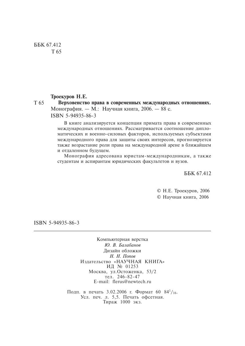 В книге анализируется концепция примата права в современных международных отношениях. Рассматривается соотношение дипломатических и военно?силовых факторов, используемых субъектами международного права для защиты своих интересов, прогнозируется также возрастание роли права на международной арене в ближайшем и отдаленном будущем. Монография адресована юристам?международникам, а также студентам и аспирантам юридических факультетов и вузов.