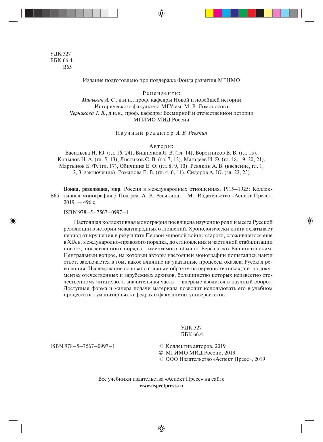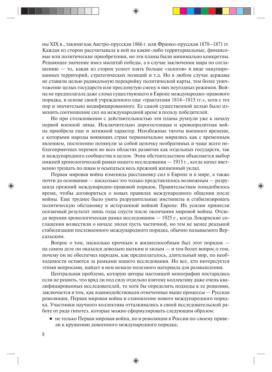 Настоящая коллективная монография посвящена изучению роли и места Русской революции в истории международных отношений. Хронологически книга охватывает период от крушения в результате Первой мировой войны старого, сложившегося еще в XIX в. международно-правового порядка, до становления и частичной стабилизации нового, послевоенного порядка, именуемого обычно Версальско-Вашингтонским. Центральный вопрос, на который авторы настоящей монографии попытались найти ответ, заключается в том, какое влияние на указанные процессы оказала Русская революция. Исследование основано главным образом на первоисточниках, т.е. на документах отечественных и зарубежных архивов, большинство которых неизвестно отечественному читателю, а значительная часть — впервые вводится в научный оборот. Доступная форма и манера подачи материала позволит использовать его в учебном процессе на гуманитарных кафедрах и факультетах университетов.