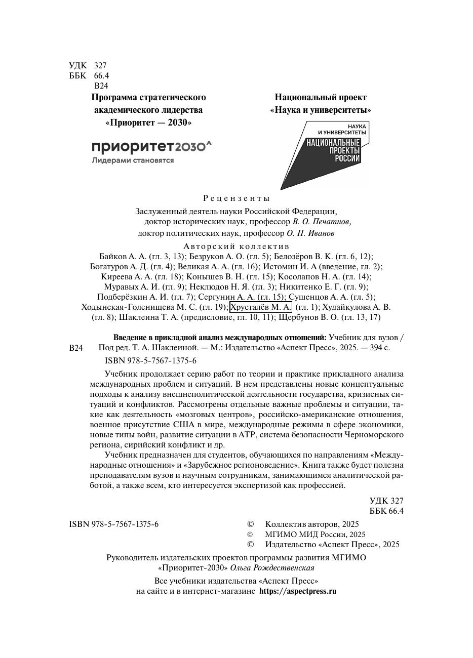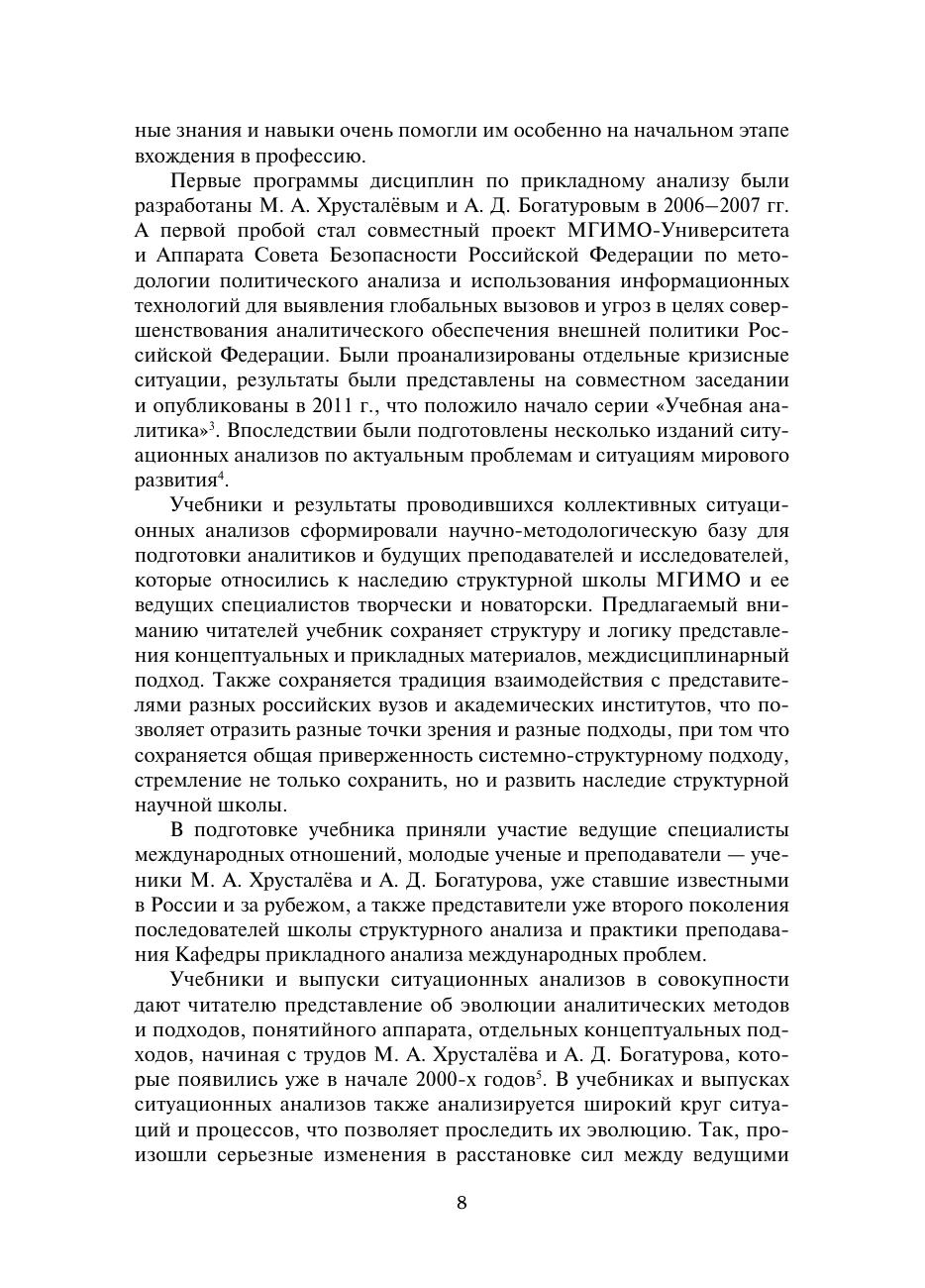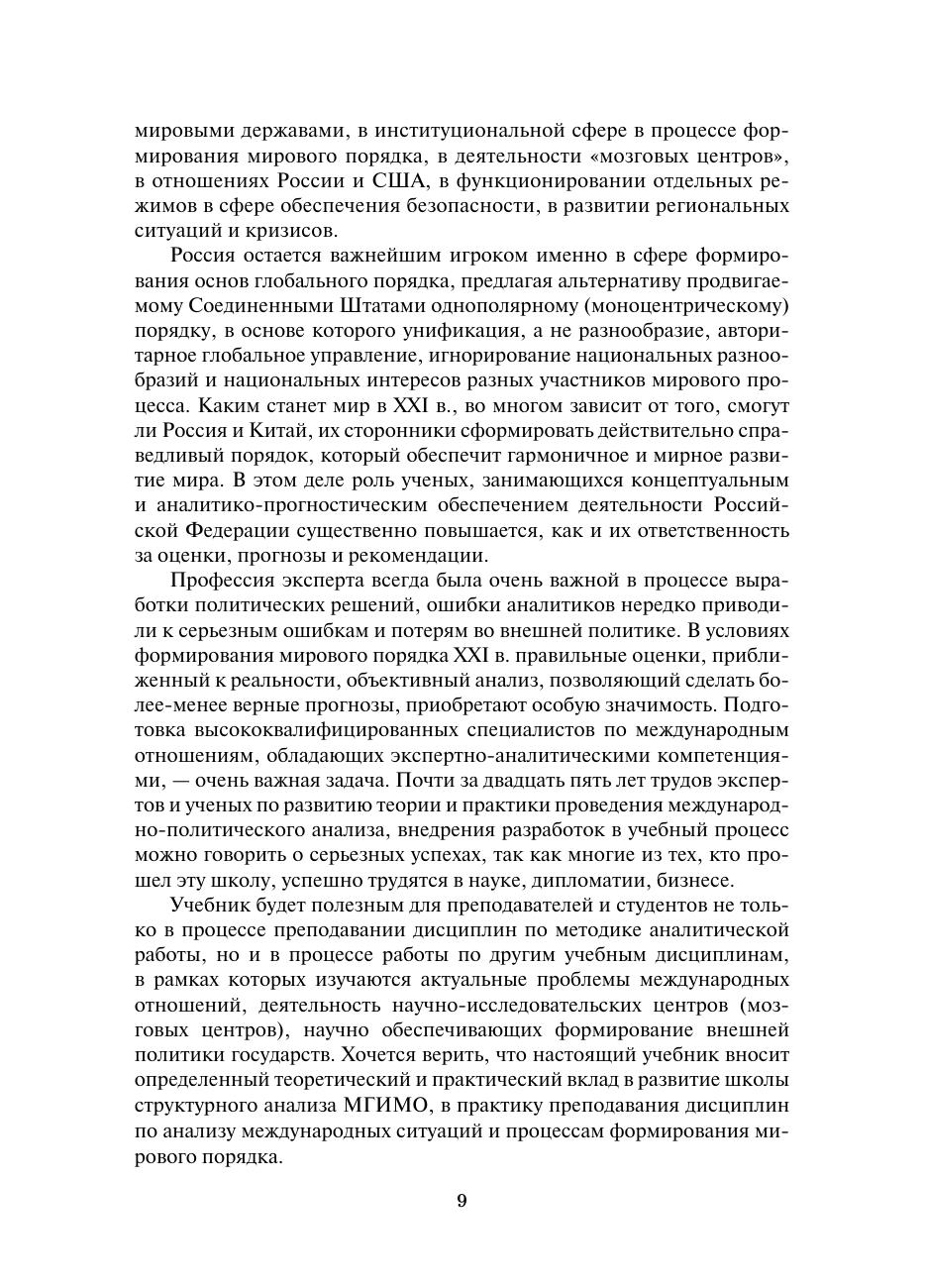 Учебник продолжает серию работ по теории и практике прикладного анализа международных проблем и ситуаций. В нем представлены новые концептуальные подходы к анализу внешнеполитической деятельности государства, кризисных ситуаций и конфликтов. Рассмотрены отдельные важные проблемы и ситуации, такие как деятельность «мозговых центров», российско-американские отношения, военное присутствие США в мире, международные режимы в сфере экономики, новые типы войн, развитие ситуации в АТР, система безопасности Черноморского региона, сирийский конфликт и др. Учебник предназначен для студентов, обучающихся по направлениям «Международные отношения» и «Зарубежное регионоведение». Книга также будет полезна преподавателям вузов и научным сотрудникам, занимающимся аналитической работой, а также всем, кто интересуется экспертизой как профессией.