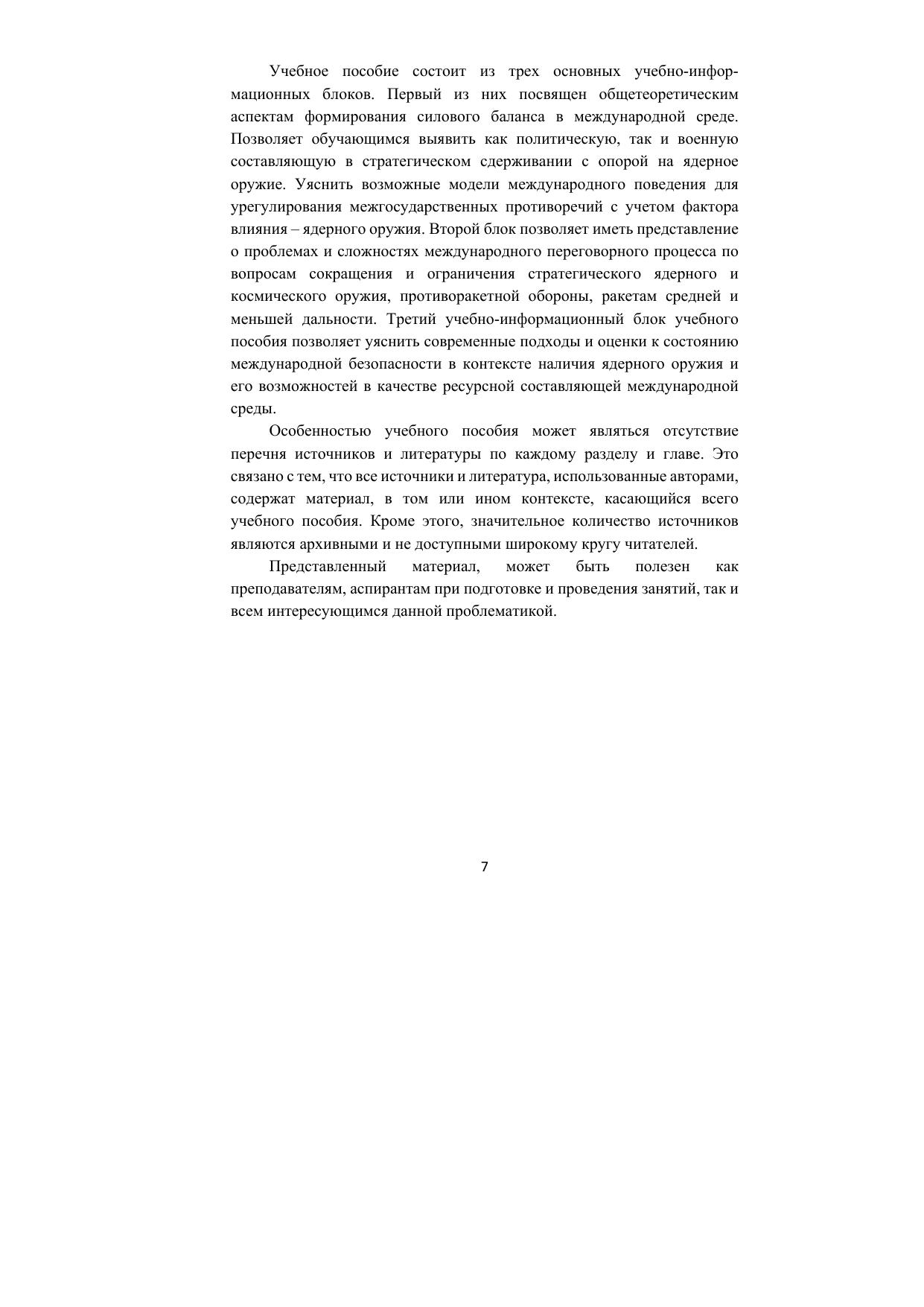 В учебном пособии даны систематизированные подходы к оценке ядерного оружия как фактора современной международной среды в достижении и поддержании стабильности и баланса сил. Представлены проблемные аспекты переговорного процесса при подготовке и заключении межгосударственных соглашений по ограничению и сокращению ядерного оружия. Уделено внимание ядерному оружию как ресурсной составляющей в обеспечении международной безопасности.