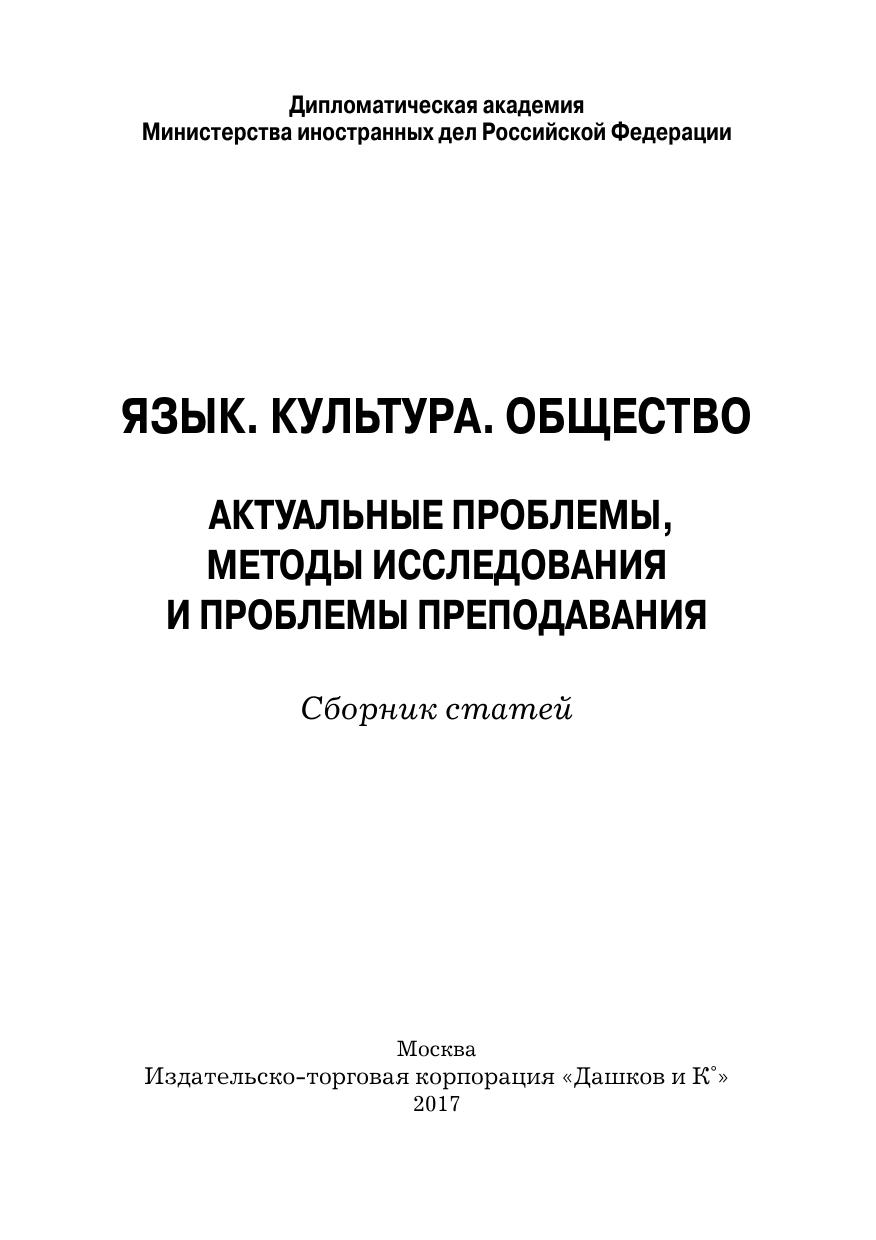 Язык. Культура. Общество. Актуальные проблемы, методы исследования и проблемы преподавания: Сборник статей