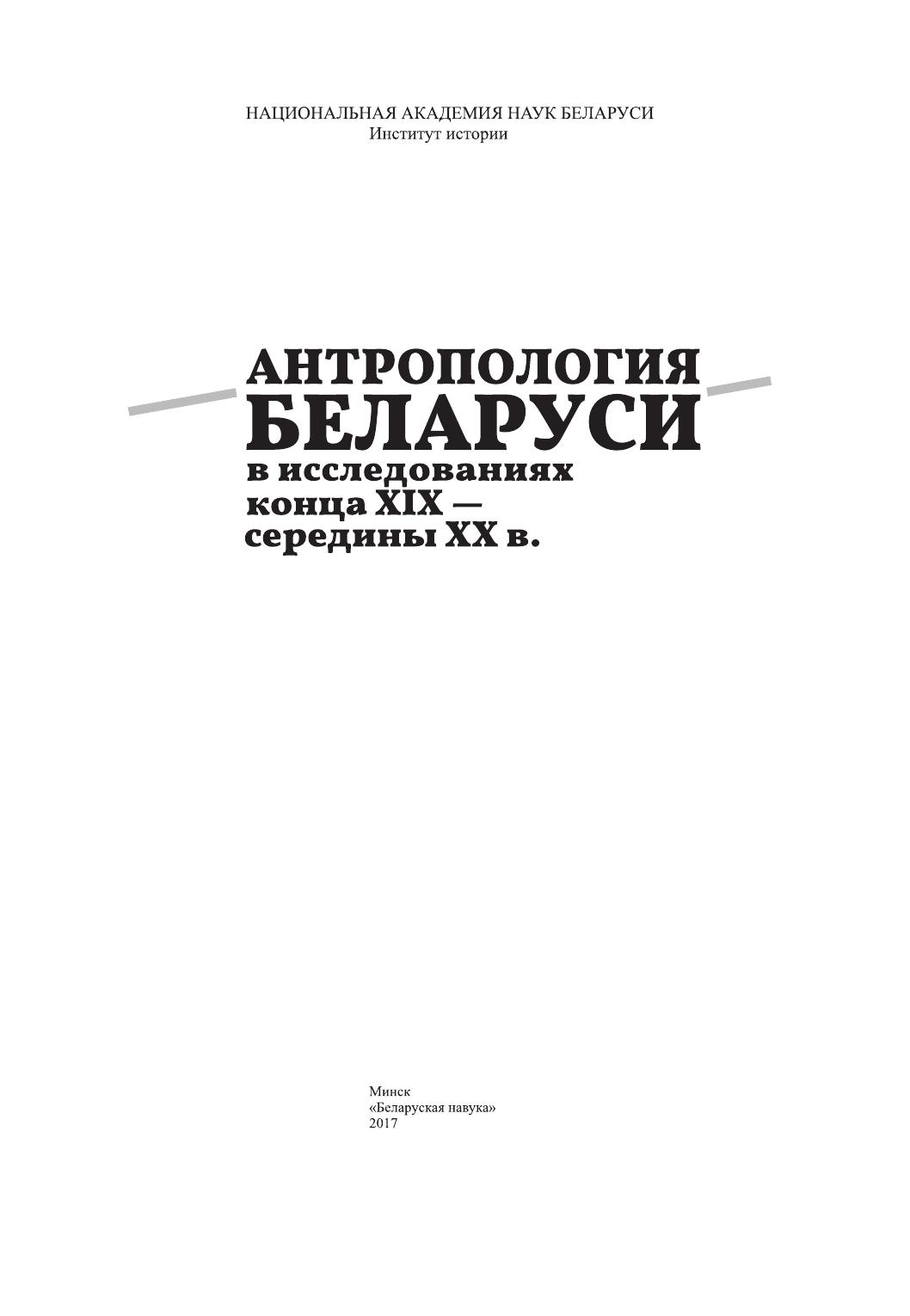 Антропология Беларуси в исследованиях конца XIX – середины ХХ в.