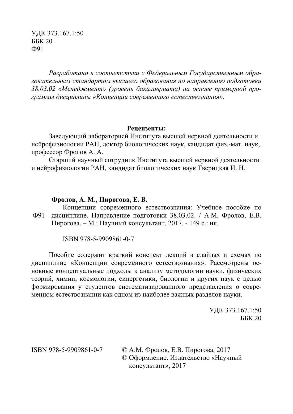 Пособие содержит краткий конспект лекций в слайдах и схемах по дисциплине «Концепции современного естествознания». Рассмотрены основные концептуальные подходы к анализу методологии науки, физических теорий, химии, космологии, синергетики, биологии и других наук с целью формирования у студентов систематизированного представления о современном естествознании как одном из наиболее важных разделов науки.