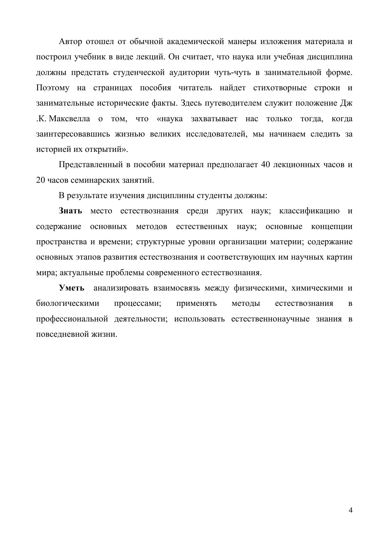 Цель учебно-методического комплекса по учебной дисциплине «Концепции современного естествознания» — помочь студенту овладеть довольно емким предметом, введенным в систему преподавания в высшей школе. В доходчивой и популярной форме излагаются современные представления о развитии природы, о структурных уровнях организации материи. Особое внимание уделяется мировоззренческим и методологическим аспектам изучаемого курса.
