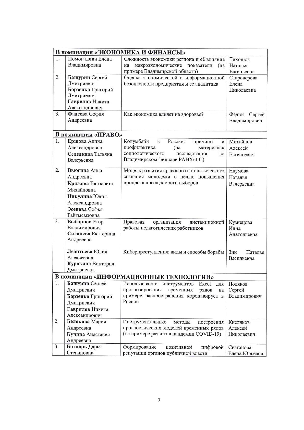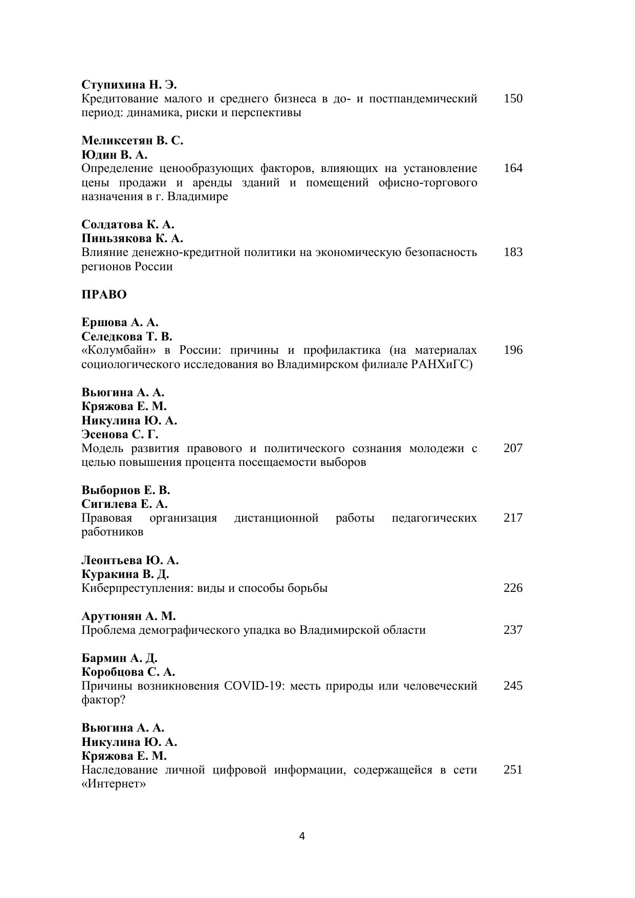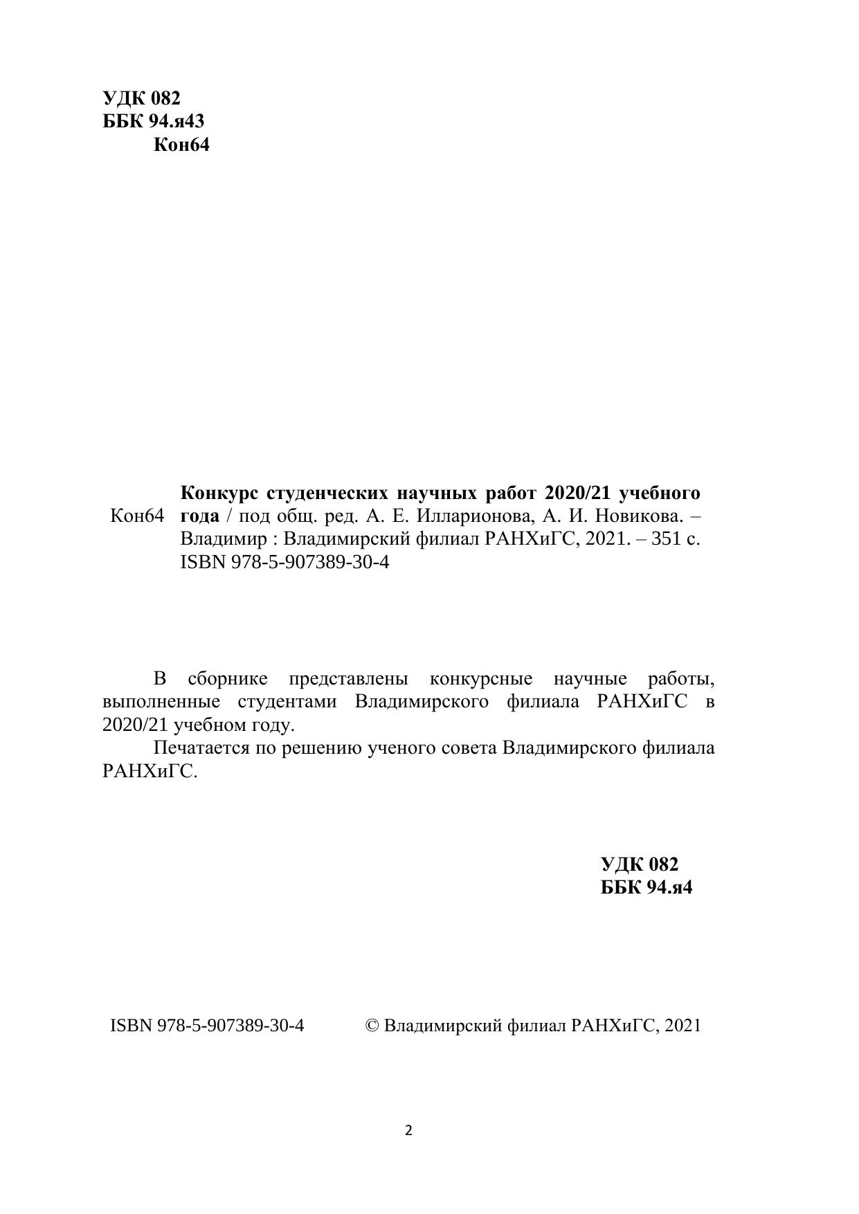 В сборнике представлены конкурсные научные работы, выполненные студентами Владимирского филиала РАНХиГС в 2020/21 учебном году. Печатается по решению ученого совета Владимирского филиала РАНХиГС.