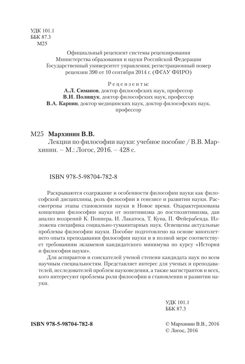 Раскрываются содержание и особенности философии науки как философской дисциплины, роль философии в генезисе и развитии науки. Рассмотрены этапы становления науки в Новое время. Охарактеризованы концепции философии науки от позитивизма до постпозитивизма, дан анализ воззрений К. Поппера, И. Лакатоса, Т. Куна, П. Фейерабенда. Изложена специфика социально-гуманитарных наук. Освещены актуальные проблемы философии науки. Пособие подготовлено на основе многолетнего опыта преподавания философии науки и в полной мере соответствует требованиям экзаменов кандидатского минимума по курсу «История и философия науки». Для аспирантов и соискателей ученой степени кандидата наук по всем научным специальностям. Представляет интерес для ученых и преподавателей, исследователей проблем науковедения, а также магистрантов и всех, кого интересуют проблемы роли философии в становлении и развитии науки.