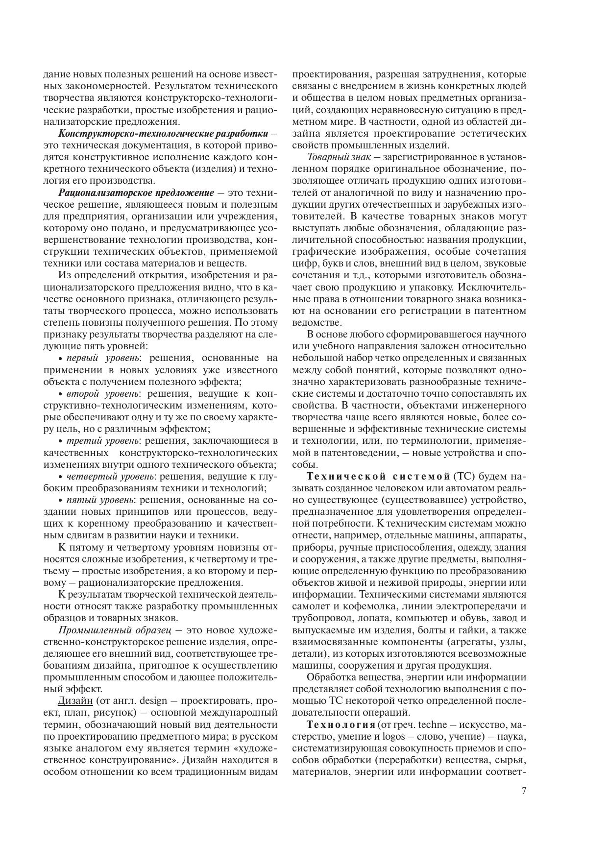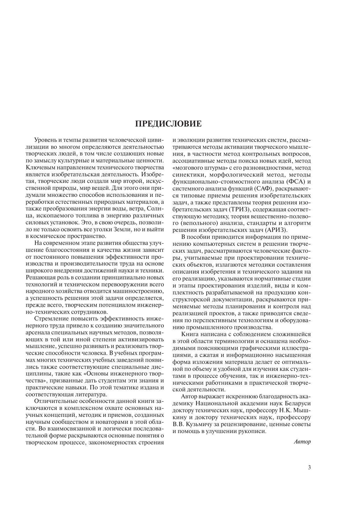 Представлены основные понятия о творческом процессе, закономерностях строения и эволюции развития технических систем, а также методы активации творческого мышления и человеческие факторы, учитываемые при создании технических объектов. Приведена методика составления описания технического решения и оформления технического задания на его реализацию, а также рассмотрены стадии и этапы проектирования изделий, виды и комплектность разрабатываемых конструкторских документов, методы планирования и контроля над реализацией проектов, тенденции развития технологий и оборудования промышленного производства. Для студентов высших учебных заведений, обучающихся по техническим
