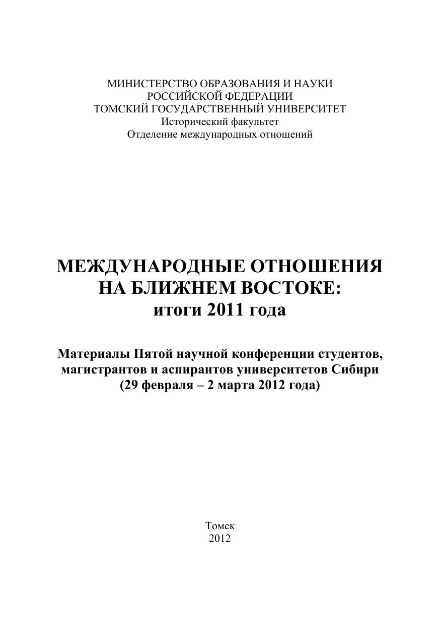 Международные отношения на Ближнем Востоке: итоги 2011 года