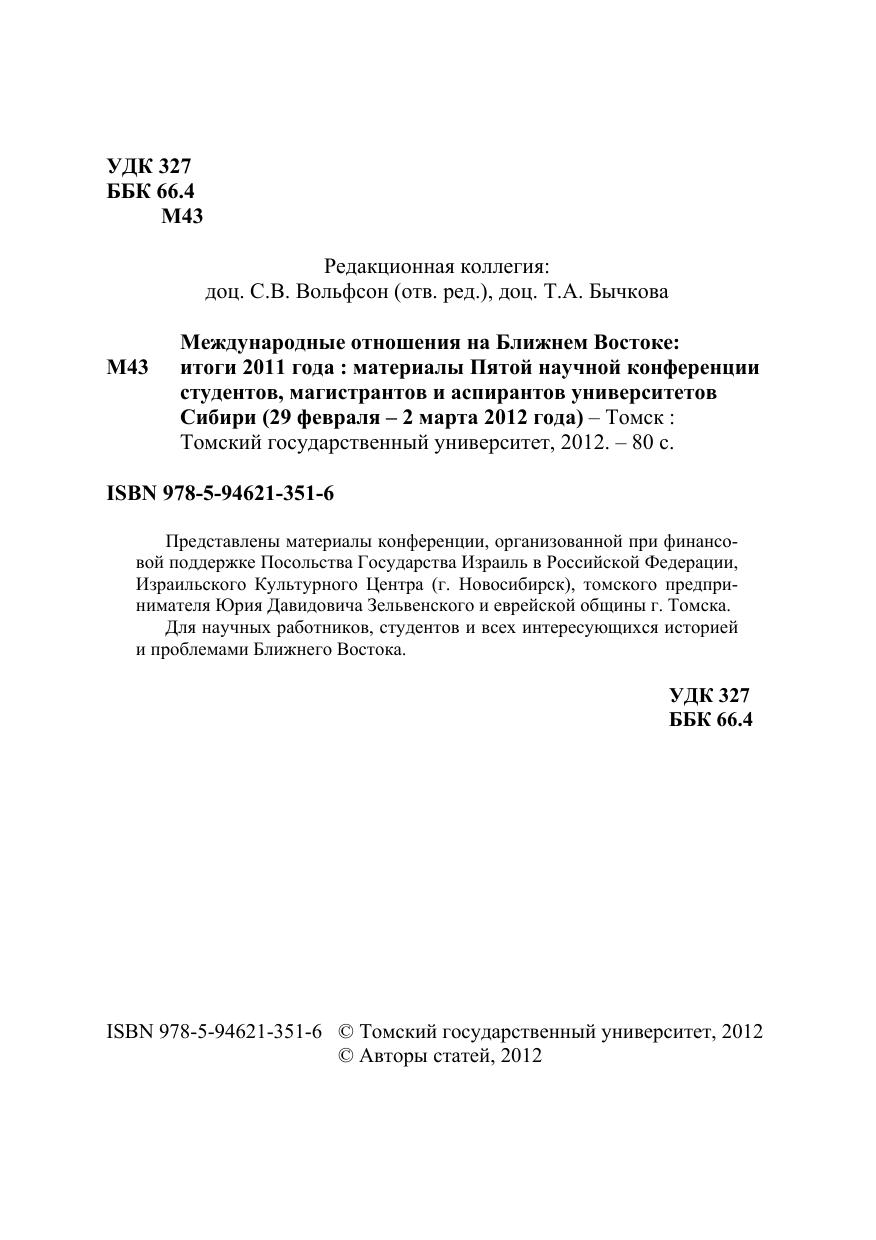 Представлены материалы конференции, организованной при финансовой поддержке Посольства Государства Израиль в Российской Федерации, Израильского Культурного Центра (г. Новосибирск), томского предпринимателя Юрия Давидовича Зельвенского и еврейской общины г. Томска. Для научных работников, студентов и всех интересующихся историей и проблемами Ближнего Востока.