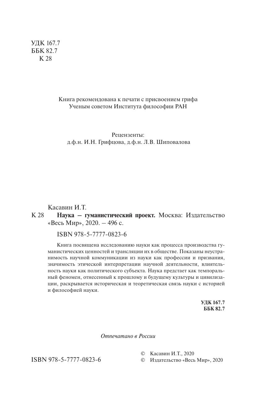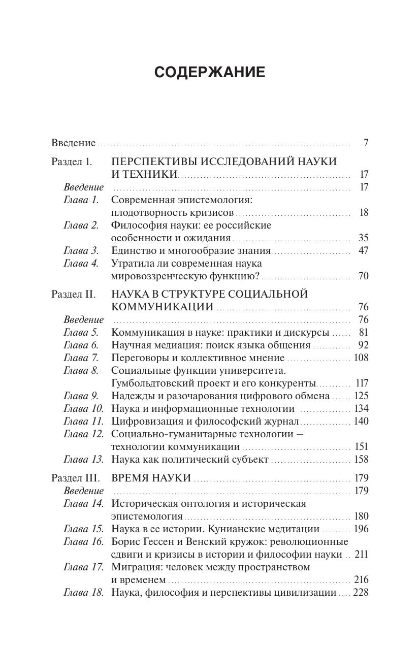 Книга посвящена исследованию науки как процесса производства гуманистических ценностей и трансляции их в обществе. Показаны неустранимость научной коммуникации из науки как профессии и призвания, значимость этической интерпретации научной деятельности, влиятельность науки как политического субъекта. Наука предстает как темпоральный феномен, отнесенный к прошлому и будущему культуры и цивилизации, раскрывается историческая и теоретическая связь науки с историей и философией науки.