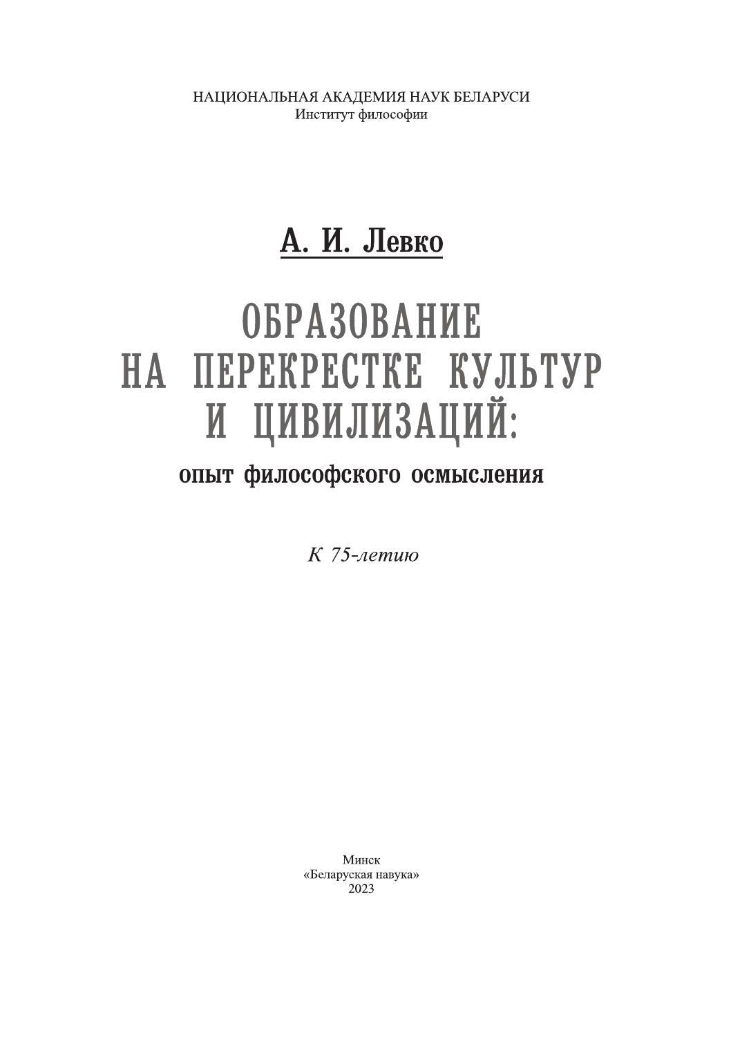 Образование на перекрестке культур и цивилизаций: опыт философского осмысления: к 75-летию