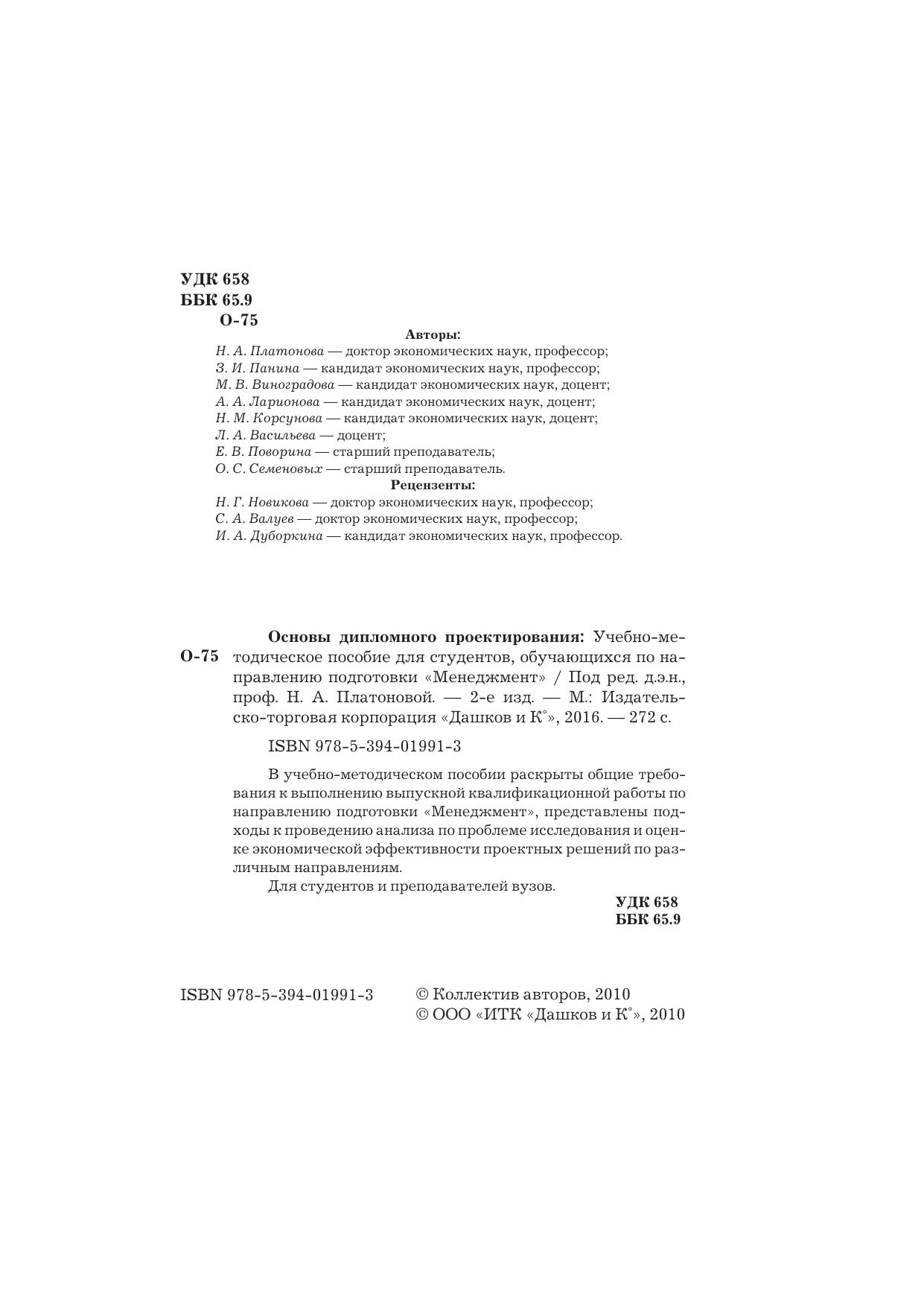В учебно-методическом пособии раскрыты общие требования к выполнению выпускной квалификационной работы по направлению подготовки «Менеджмент», представлены подходы к проведению анализа по проблеме исследования и оценке экономической эффективности проектных решений по различным направлениям. Для студентов и преподавателей вузов.