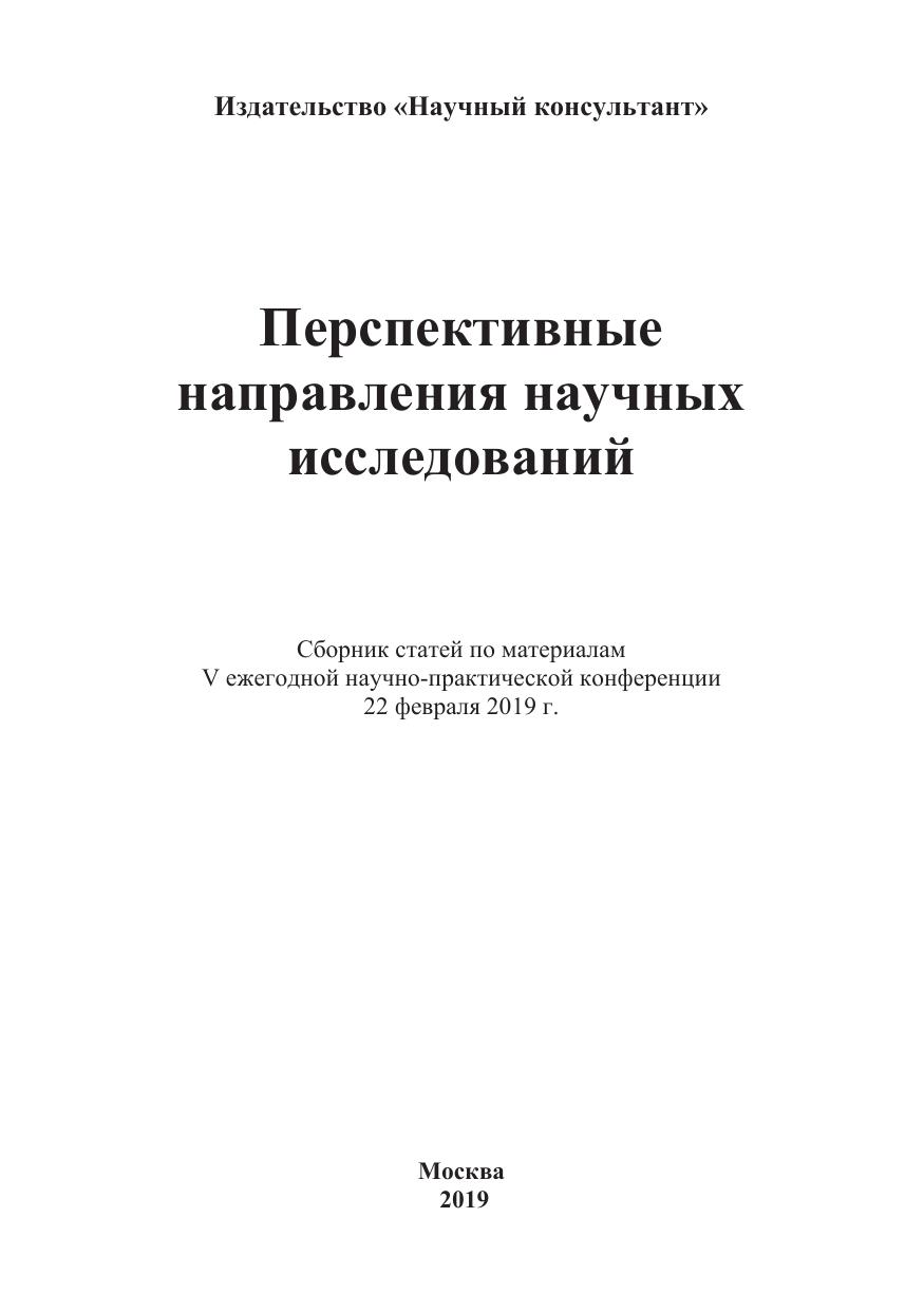 Настоящий сборник содержит материалы V ежегодной научно-практической конференции «Перспективные направления научных исследований», состоявшейся 22 февраля 2019г. (г. Москва, Хорошевское шоссе, д. 35 к.2.