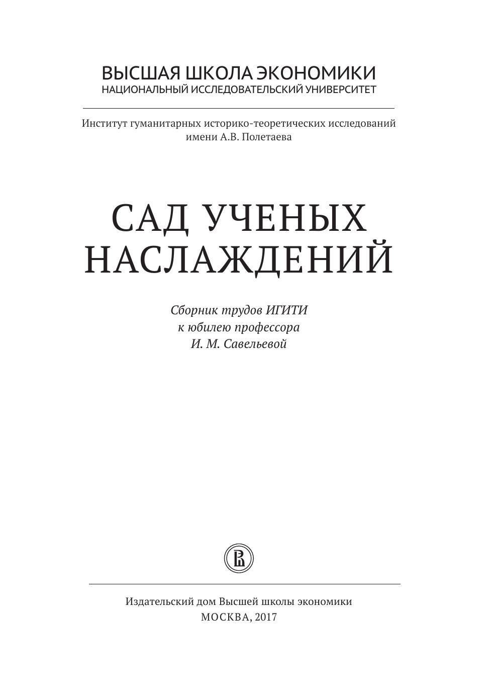 Сад ученых наслаждений: сборник трудов ИГИТИ к юбилею профессора И.М. Савельевой
