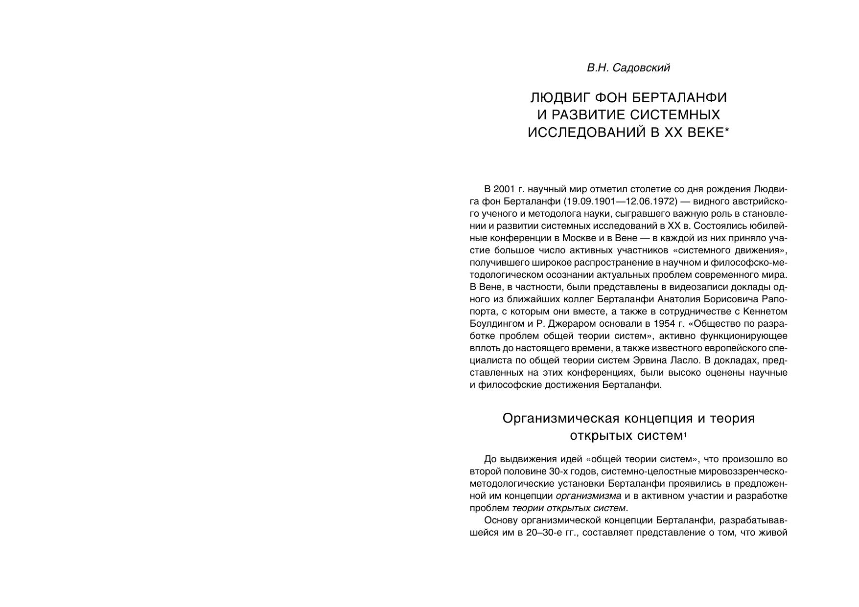 Монография представляет сборник работ, написанных по результатам конференции, прошедшей в сентябре 2001 и приуроченной к 100-летию со дня рождения Л.фон Берталанфи.