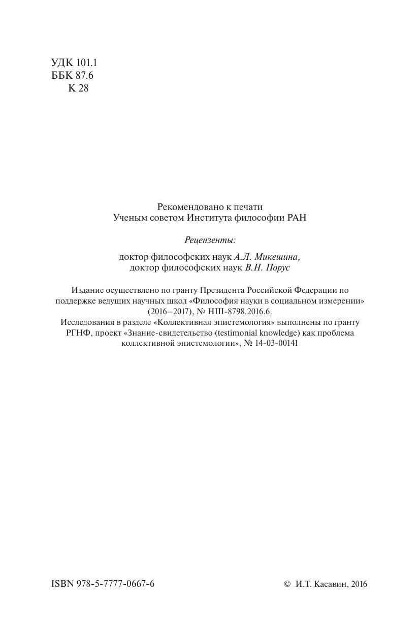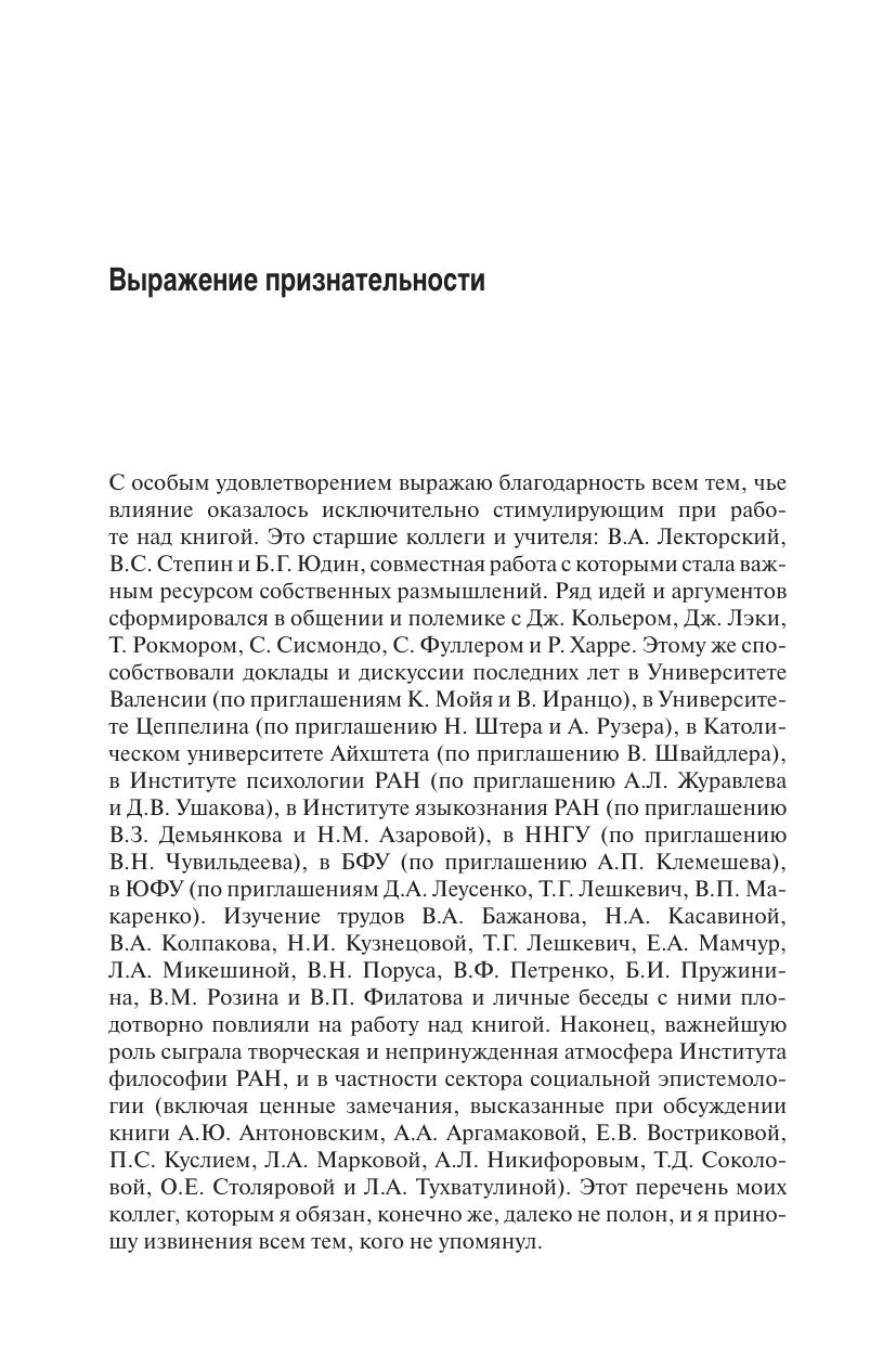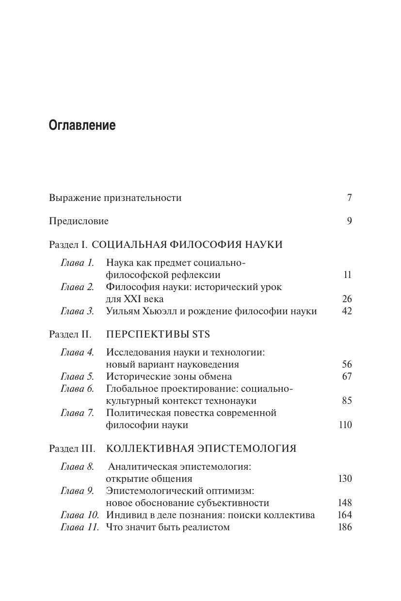 В книге конкретизируется и развивается программа социальной эпистемологии в трех направлениях. Во-первых, это дальнейшее осмысление проблематики познавательной коммуникации и коллективного субъекта, которая актуализировалась в предшествующих работах автора. Эта проблематика рассмотрена как значимый водораздел между так называемой критической социальной эпистемологией (С. Фуллер) и аналитической социальной эписте мологией (Э. Голдман). Преимущество предлагаемой концепции по сравнению с указанными в том, что она вводит в аргументативный арсенал социальной эпистемологии идеи М.М. Бахтина, Л.С. Выготского и М.К. Петрова, существенно продвигающие понимание коммуникативной природы познания. Во-вторых, настоящая книга инспирирована идеями, возникшими в рамках новой концепции «социальной философии науки». Это российская версия известной американской программы «Science, Technology and Society», или обновленный вариант науковедения, в котором философия науки играет ведущую роль. Примечательно, что она делает своим предметом не только структуру и развитие науки, не только внешний социальный контекст ее существования, но предпосылает науке результат социально- философского и междисциплинарного синтеза – социальную онтологию науки, социальную картину мира. Последняя составляет неотъемлемый элемент понимания науки и техники как культурного и цивилизационного явления. И в-третьих, книга включила исследования политического поворота в философии науки, начавшегося на Западе уже свыше сорока лет назад и в наши дни ставшего особенно важным для России. Этот поворот актуализирует тему «Наука и политика» и проявляется в интенсивном и взаимно плодотворном обмене между философией науки и философией политики. В свете этого читатель может понять мотивы использования в книге философско- публицистических заметок, посвященных реформе науки.