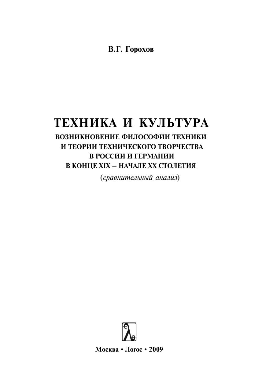 Техника и культура: возникновение философии техники и теории технического творчества в России и Германии в конце XIX – начале XX столетия