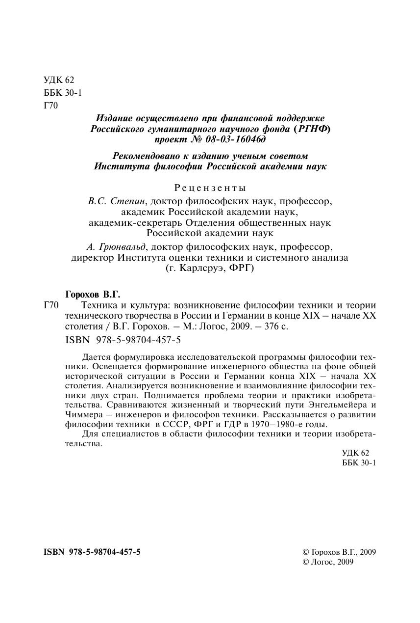 Дается формулировка исследовательской программы философии техники. Освещается формирование инженерного общества на фоне общей исторической ситуации в России и Германии конца XIX – начала XX столетия. Анализируется возникновение и взаимовлияние философии техники двух стран. Поднимается проблема теории и практики изобретательства. Сравниваются жизненный и творческий пути Энгельмейера и Чиммера – инженеров и философов техники. Рассказывается о развитии философии техники в СССР, ФРГ и ГДР в 1970–1980-е годы. Для специалистов в области философии техники и теории изобретательства.