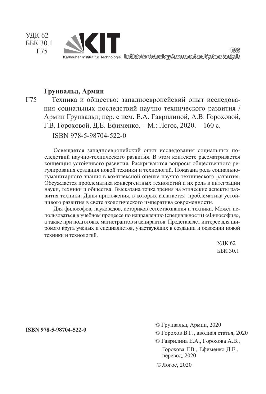 Освещается западноевропейский опыт исследования социальных последствий научно-технического развития. В этом контексте рассматривается концепция устойчивого развития. Раскрываются вопросы общественного регулирования создания новой техники и технологий. Показана роль социальногуманитарного знания в комплексной оценке научно-технического развития. Обсуждается проблематика конвергентных технологий и их роль в интеграции науки, техники и общества. Высказана точка зрения на этические аспекты развития техники. Даны приложения, в которых излагается проблематика устойчивого развития в свете экологического императива современности. Для философов, науковедов, историков естествознания и техники. Может использоваться в учебном процессе по направлению (специальности) «Философия», а также при подготовке магистрантов и аспирантов. Представляет интерес для широкого круга ученых и специалистов, участвующих в создании и освоении новой техники и технологий.