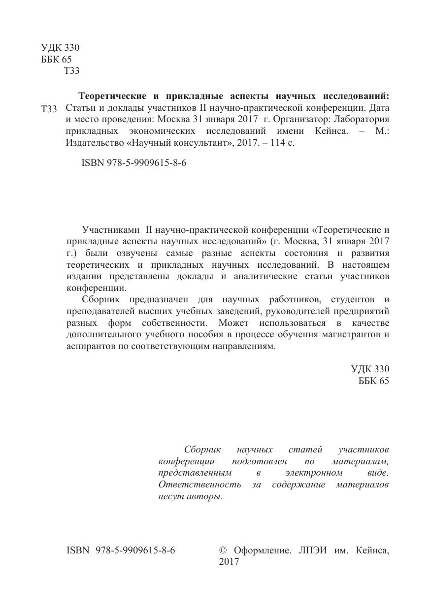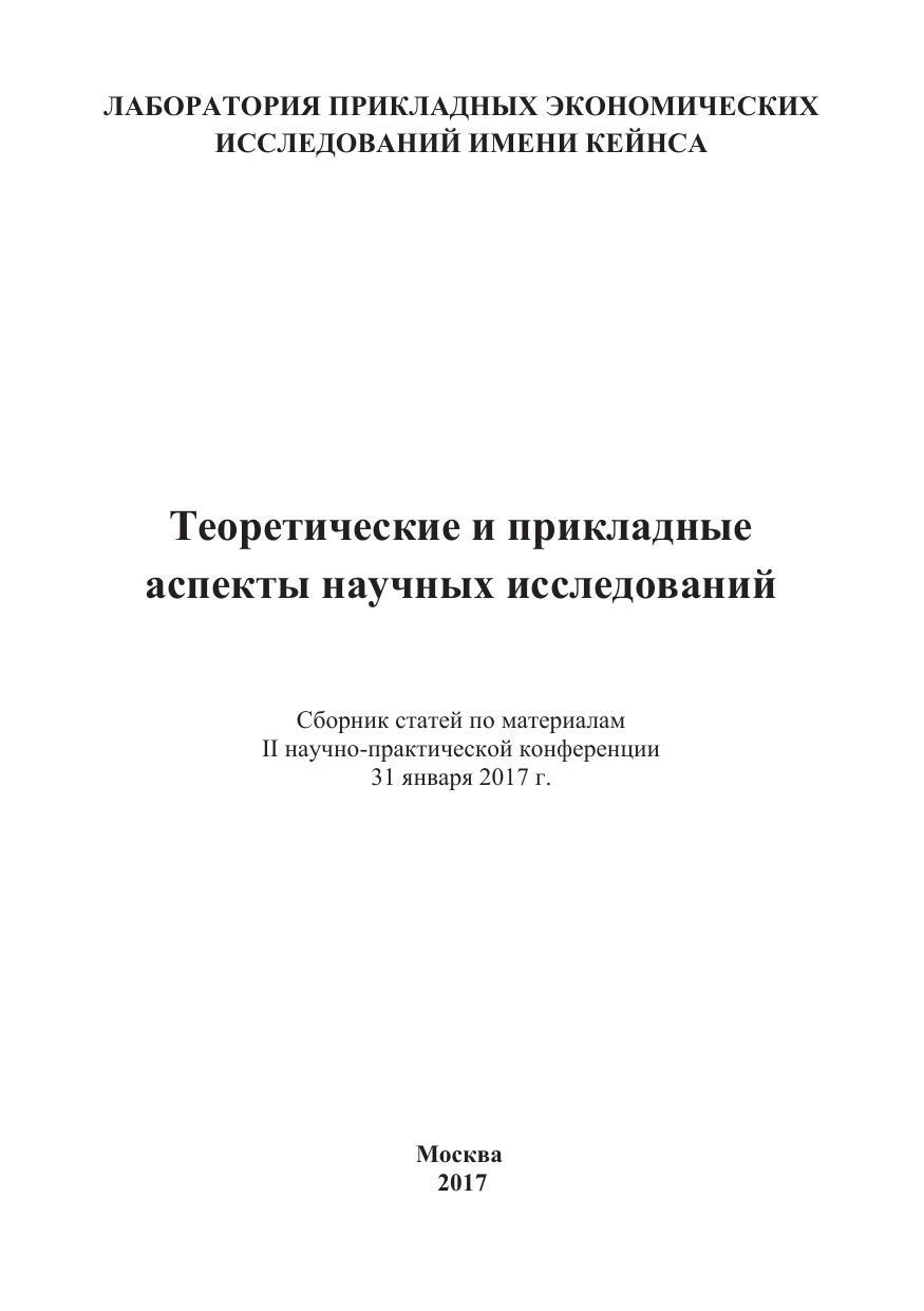 Участниками II научно-практической конференции «Теоретические и прикладные аспекты научных исследований» (г. Москва, 31 января 2017 г.) были озвучены самые разные аспекты состояния и развития теоретических и прикладных научных исследований. В настоящем издании представлены доклады и аналитические статьи участников конференции.