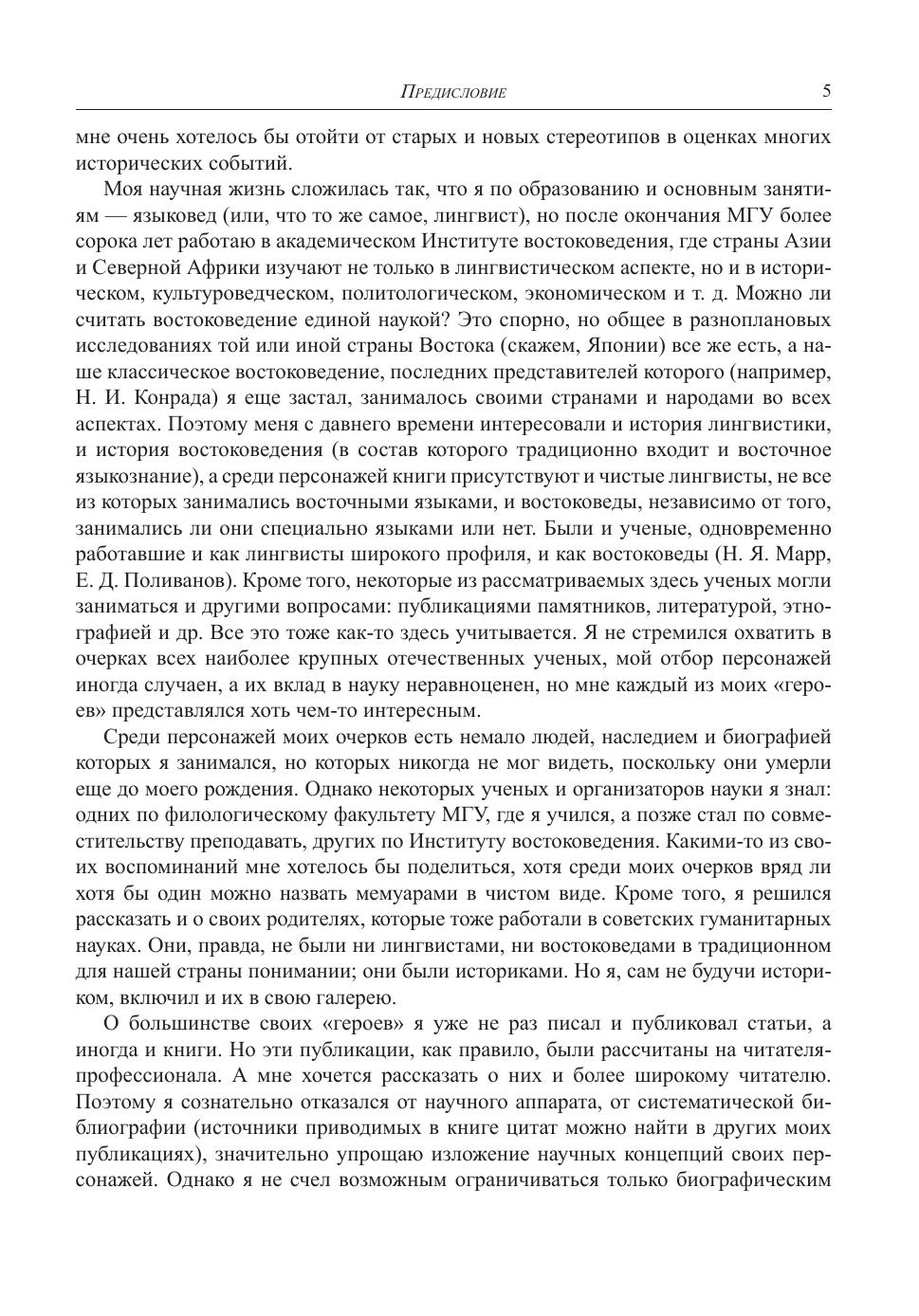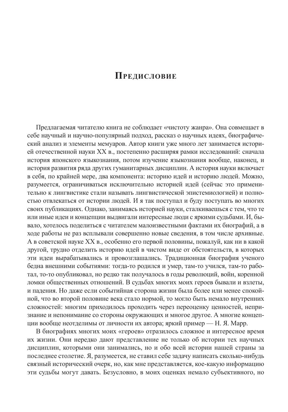 Предлагаемая читателю книга включает в себя ряд биографических очерков, посвященных отечественным ученым - гуманитариям XX в., прежде всего, языковедам и востоковедам. Автор книги, который уже много лет занимается историей науки, стремился совместить в своих очерках историю идей и историю людей, рассказ о научных концепциях, биографический анализ и в некоторых случаях элементы мемуаров. В книге рассказывается и о развитии ряда научных дисциплин в течение последнего столетия, и об особенностях личности ученых, выдвигавших те или иные идеи и концепции, и о влиянии на судьбу и деятельность этих ученых сложного и интересного времени их жизни. Рассматриваются малоизвестные факты истории нашей науки XX в., вводятся в научный оборот некоторые новые сведения, в том числе архивные, делается попытка отойти от старых и новых стереотипов в оценках многих исторических событий.