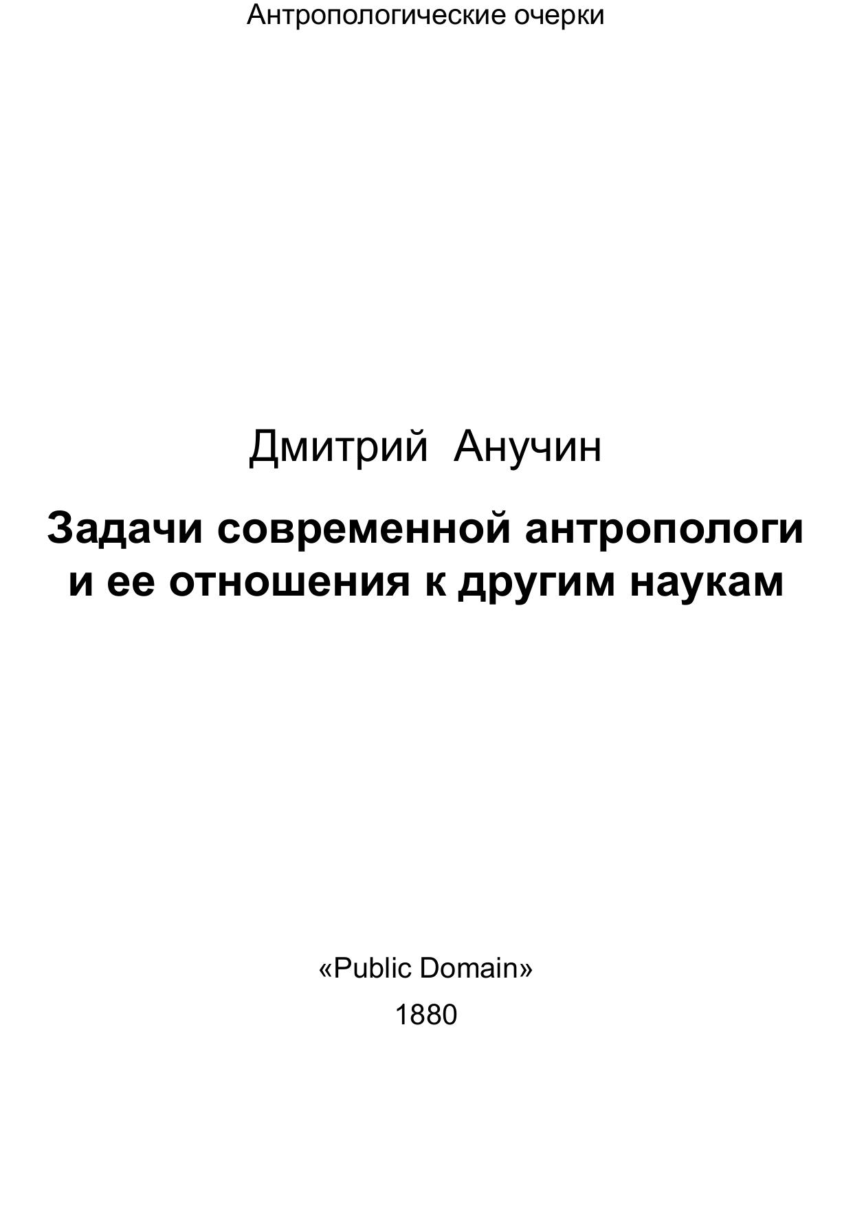 Задачи современной антропологи и ее отношения к другим наукам