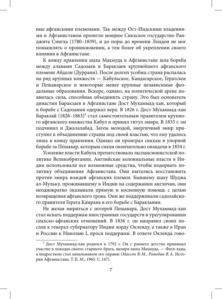 Книга представляет собой исследование англо-афганских и русско-афганских отношений в конце XIX в. по афганскому источнику «Сирадж ат-таварих» — труду официального историографа Файз Мухаммада Катиба, написанному по распоряжению Хабибулла-хана, эмира Афганистана в 1901–1919 гг. К исследованию привлекаются другие многочисленные исторические источники на русском, английском, французском и персидском языках.