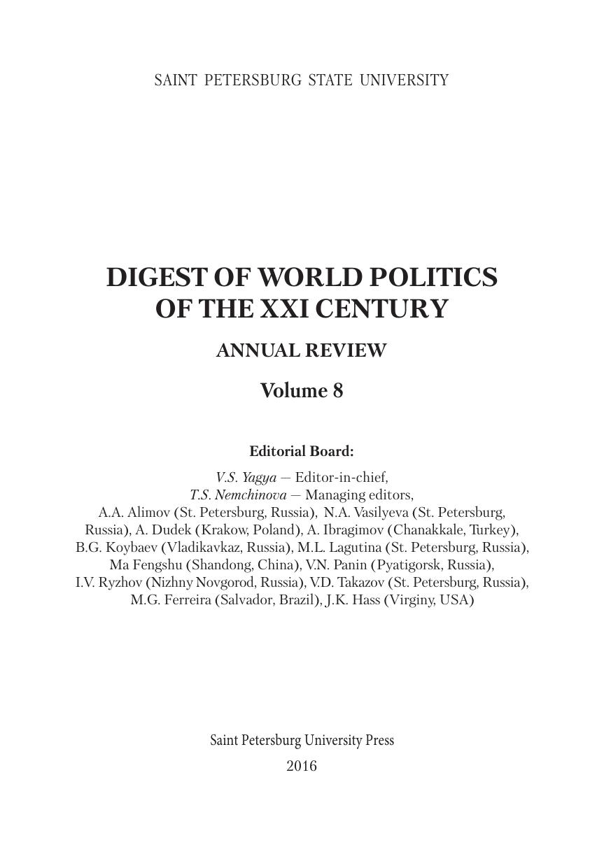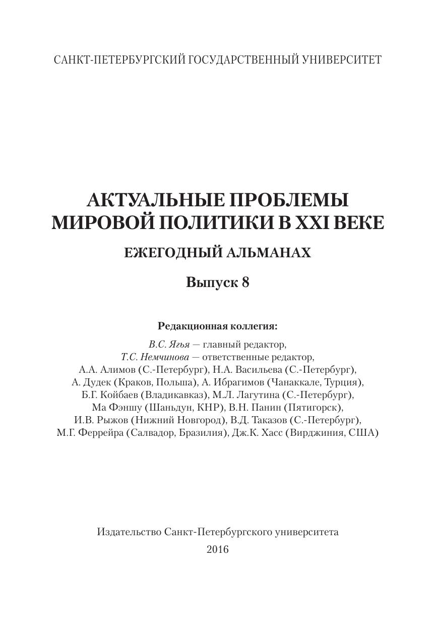 Актуальные проблемы мировой политики в XXI веке. Вып. 8: сб. статей