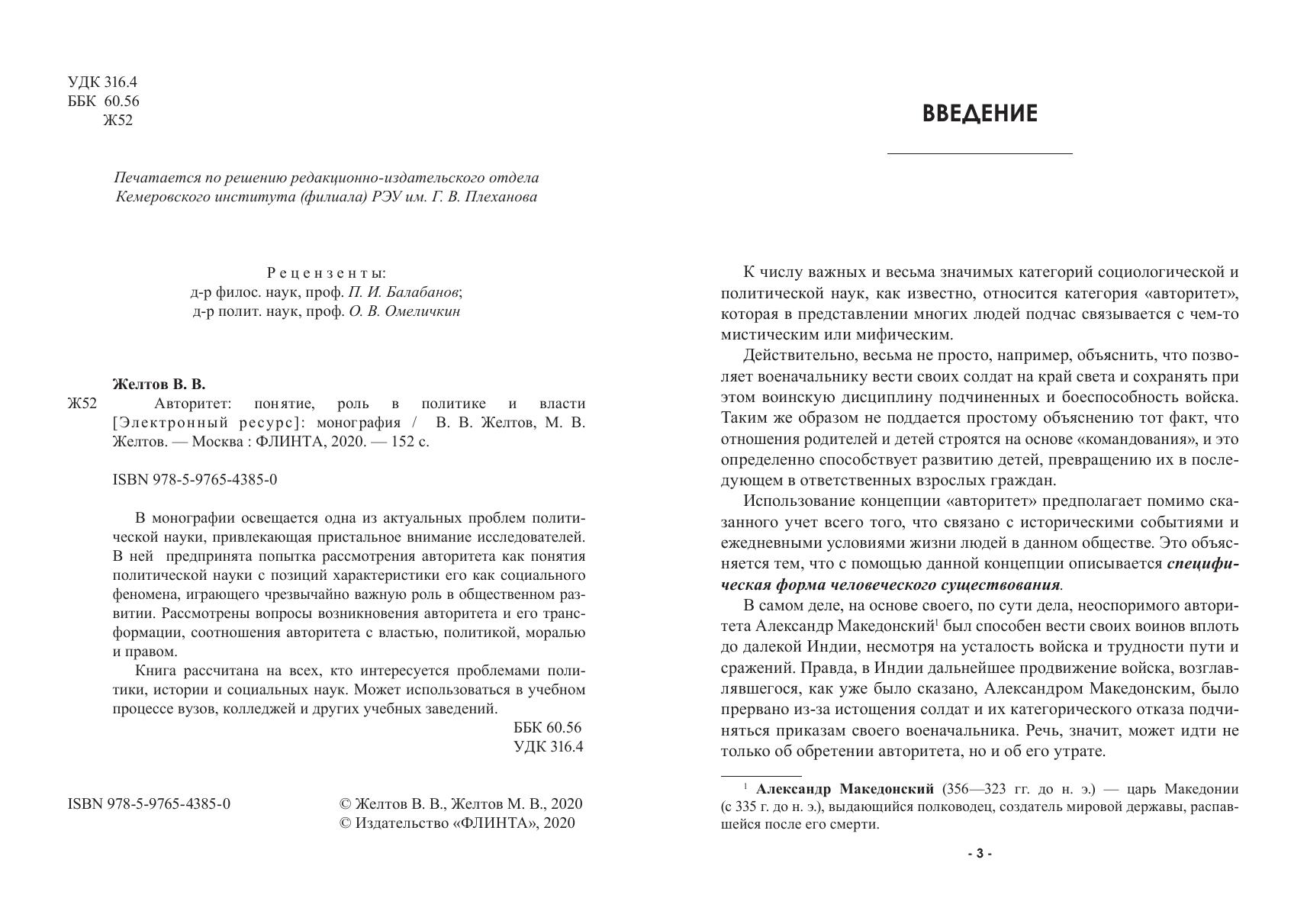 В монографии освещается одна из актуальных проблем политической науки, привлекающая пристальное внимание исследователей. В ней предпринята попытка рассмотрения авторитета как понятия политической науки с позиций характеристики его как социального феномена, играющего чрезвычайно важную роль в общественном развитии. Рассмотрены вопросы возникновения авторитета и его трансформации, соотношения авторитета с властью, политикой, моралью и правом.