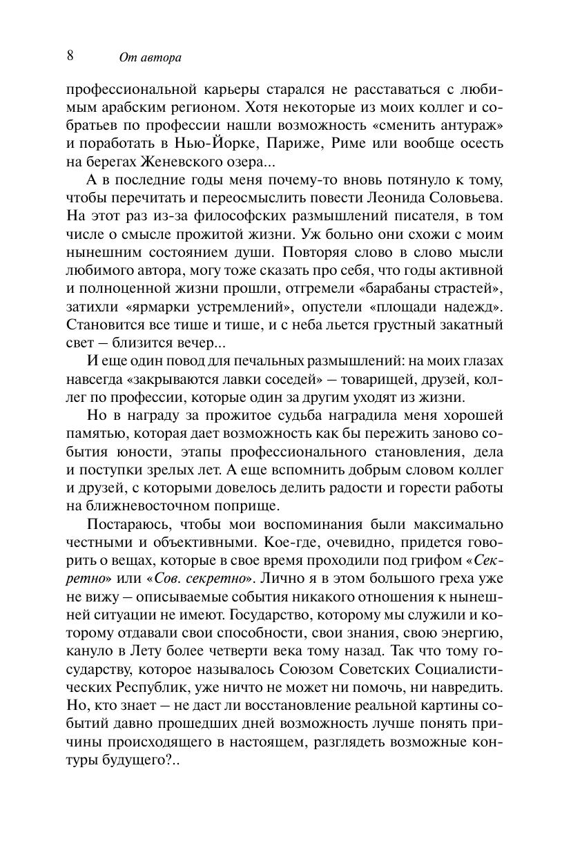 Воспоминания видного советского и российского дипломата, замечательного переводчика-арабиста Василия Ивановича Колотуши (1941–2020) посвящены событиям в сфере ближневосточной политики, к которым автор был причастен в 60–90?х гг. XX в. Ему довелось работать и часто бывать во многих странах Ближнего Востока и Северной Африки – в Египте, Иордании, Ираке, Йемене, Сирии, Судане, а в Ливане и Марокко он был послом нашей страны. Наряду с откровенным повествованием о событиях в сфере ближневосточной политики, яркими характеристиками региональных лидеров и политиков, познавательным рассказом о ремесле переводчика, В.И. Колотуша живо рисует картины повседневной жизни в странах, которые он так хорошо знал. Эта книга существенно дополняет наши представления о событиях на Ближнем Востоке второй половины XX в. Издание адресовано автором коллегам,дипломатам, арабистам, читателям, интересующимся странами Ближнего Востока и внешней политикой СССР и России.