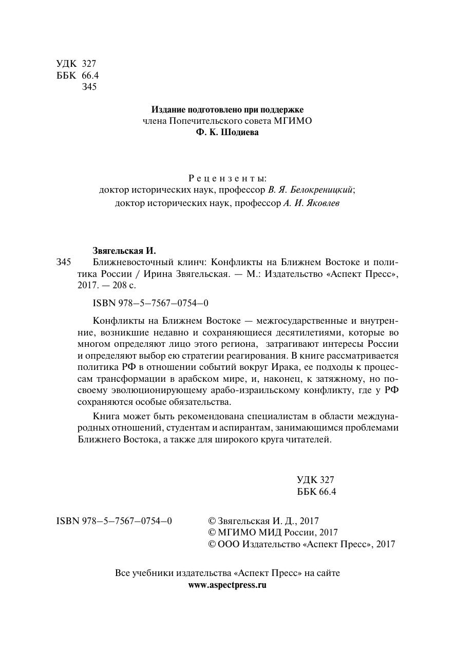 Конфликты на Ближнем Востоке — межгосударственные и внутренние, возникшие недавно и сохраняющиеся десятилетиями, которые во многом определяют лицо этого региона, затрагивают интересы России и определяют выбор ею стратегии реагирования. В книге рассматривается политика РФ в отношении событий вокруг Ирака, ее подходы к процессам трансформации в арабском мире, и, наконец, к затяжному, но по-своему эволюционирующему арабо-израильскому конфликту, где у РФ сохраняются особые обязательства. Книга может быть рекомендована специалистам в области международных отношений, студентам и аспирантам, занимающимся проблемами Ближнего Востока, а также для широкого круга читателей.