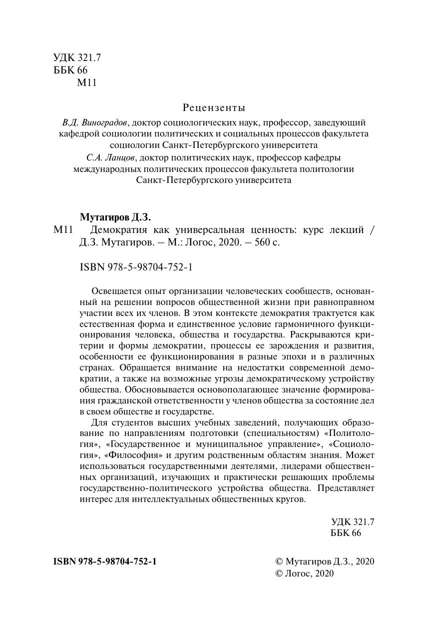 Демократия как универсальная ценность: курс лекций