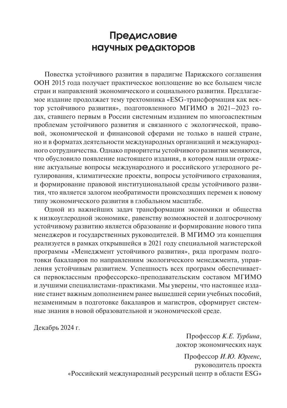 Настоящее издание объединяет три самостоятельные темы в повестке устойчивого развития: формирование правовых институтов регулирования устойчивого развития, углеродное регулирование в разных странах и проблематику устойчивого страхования для решения задач управления климатическими рисками адаптации к новым условиям хозяйствования и устойчивого развития компаний в разных отраслях бизнеса. Каждая из тем вносит свой вклад в обеспечение мер, способствующих решению задач устойчивого развития ООН и национальных целей устойчивого развития России. Для студентов высших учебных заведений, аспирантов, научных работников, специалистов в области экологии, рационального природопользования и охраны природной среды, менеджеров устойчивого развития.