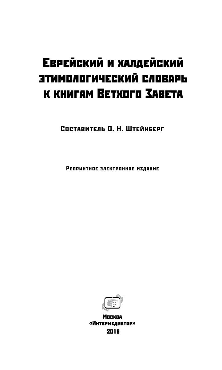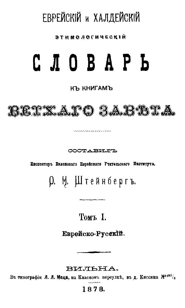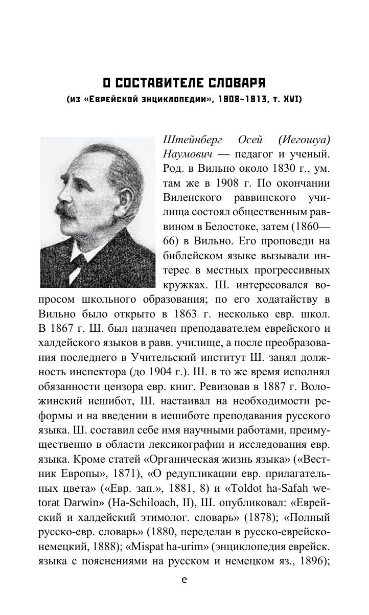 Словарь библейского иврита и арамейского (халдейского) языка был составлен во второй половине XIX века выдающимся российским педагогом и ученым О. Н. Штейнбергом. Несмотря на свою уже 140-летнюю историю, этот словарь продолжает оставаться для русскоязычного читателя непревзойденным по своим достоинствам справочным изданием для изучения Ветхого Завета (Танаха) на языке оригинала.