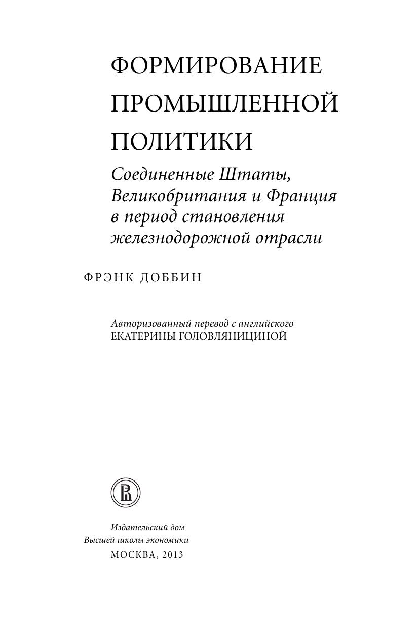 Формирование промышленной политики: Соединенные Штаты, Великобритания и Франция в период становления железнодорожной отрасли
